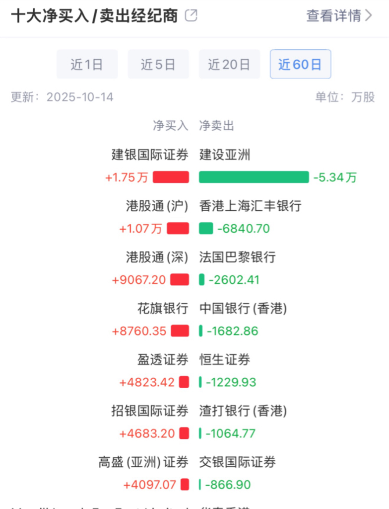 港股通持股39%,达到历史新高,44.7亿股。花旗持25%,前5大机构经纪商持股