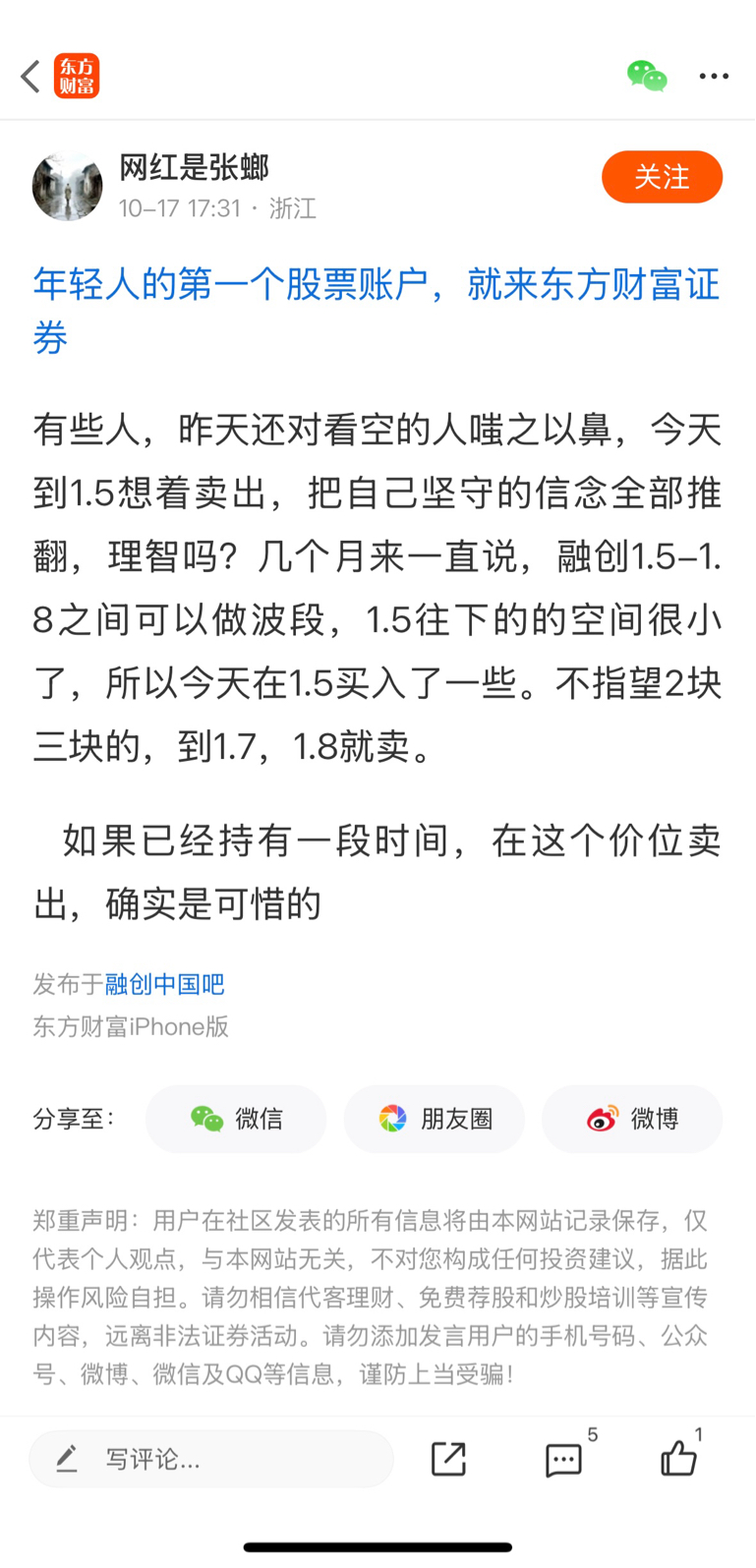 温馨提示: 1.根据《证券法》规定,禁止编造、传播虚假信息或者误导性信息,扰乱证券市场;2.用户在本社区发表的所有资料、言论等仅代表个人观点,与本网站立场无关,不对您构成任何投资建议。用户应基于自己的独立判断,自行决定证券投资并承担相应风险。《东方财富社区管理规定》