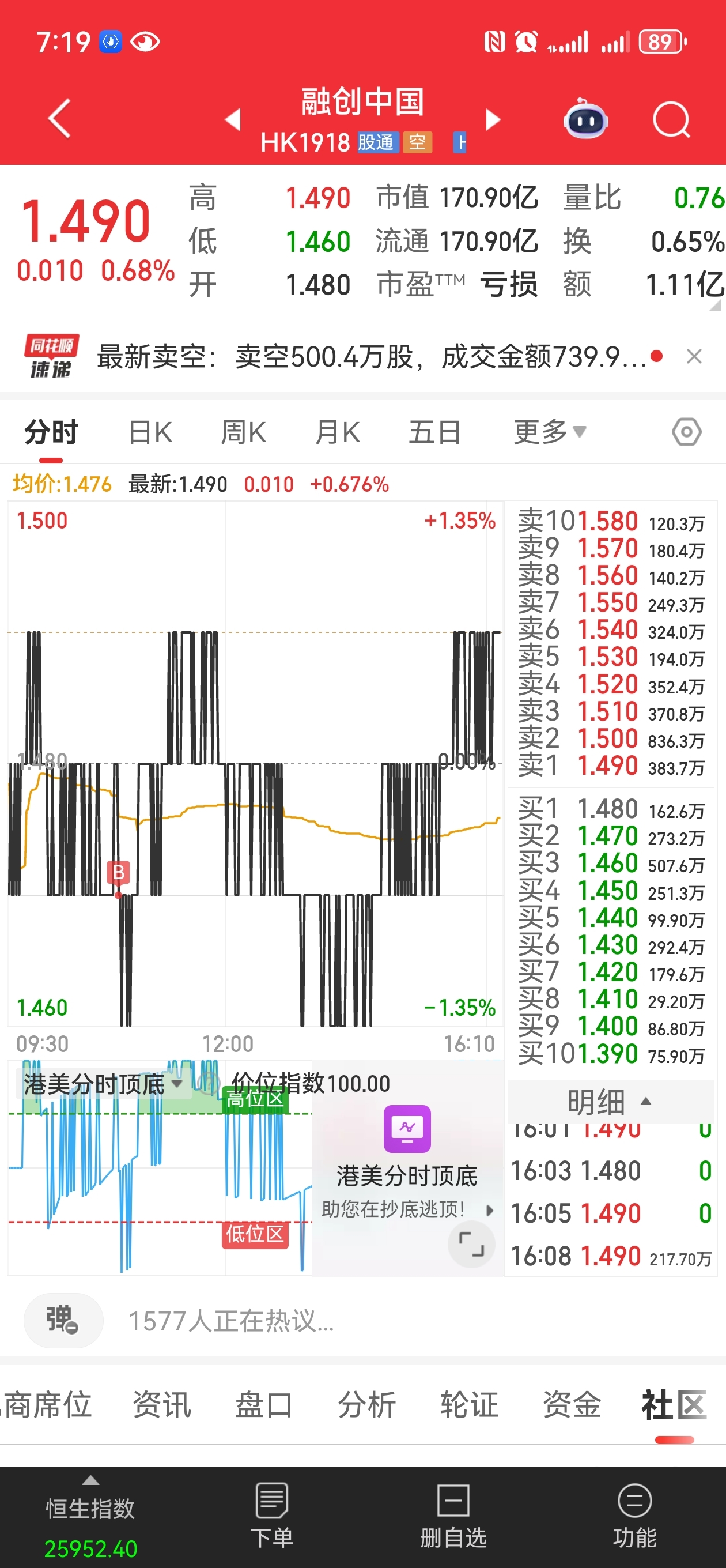 $融创中国(HK|01918)$ 不知道今天加仓融创对不对?希望明天能吃点肉,吃不到肉喝点汤也行