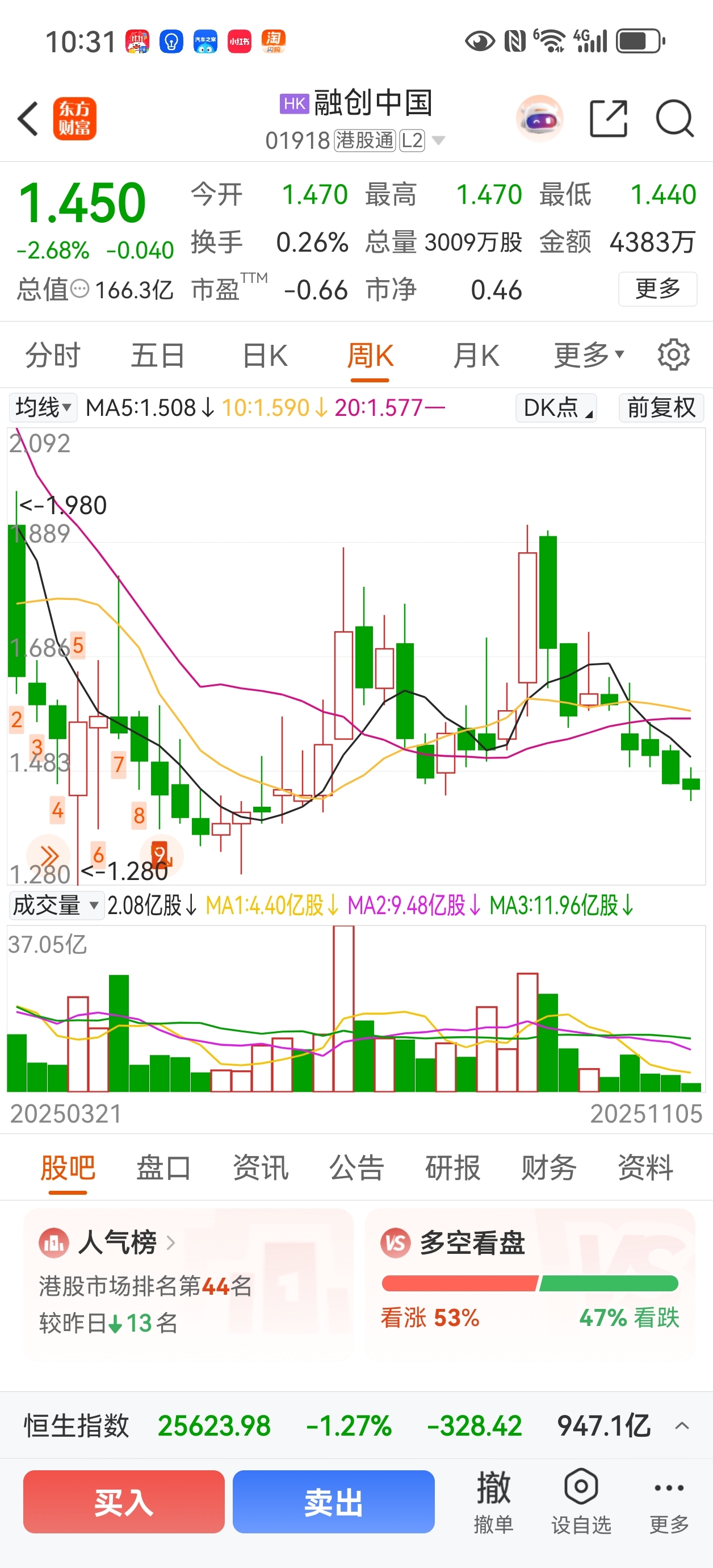 $融创中国(HK|01918)$ 不能连续绿5周吧