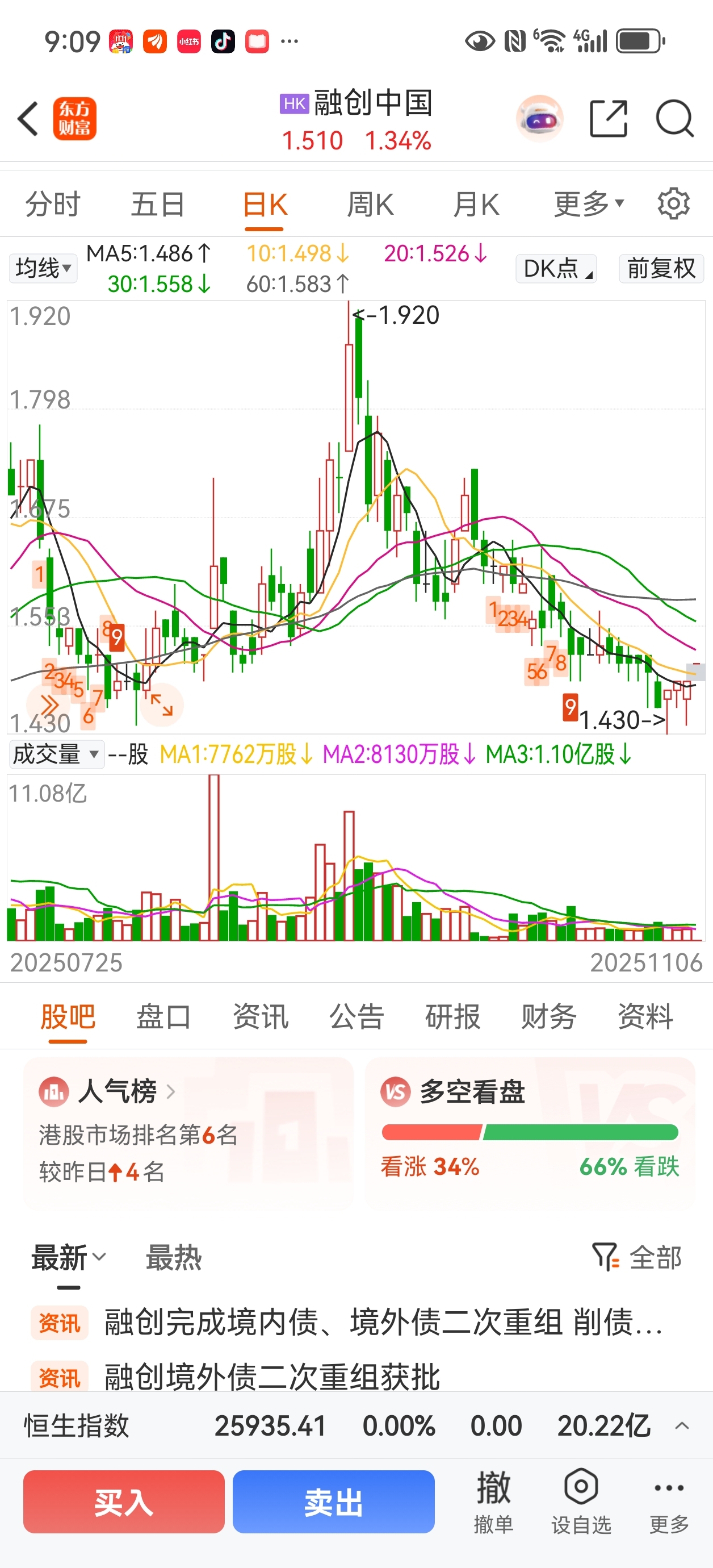 $融创中国(HK|01918)$ 高开把序列9冲没了