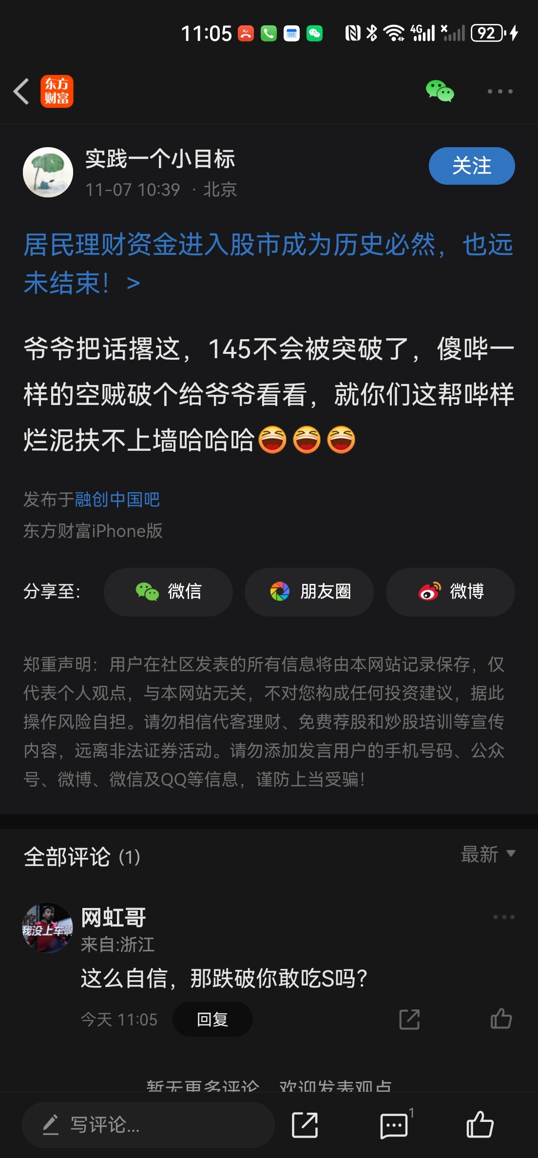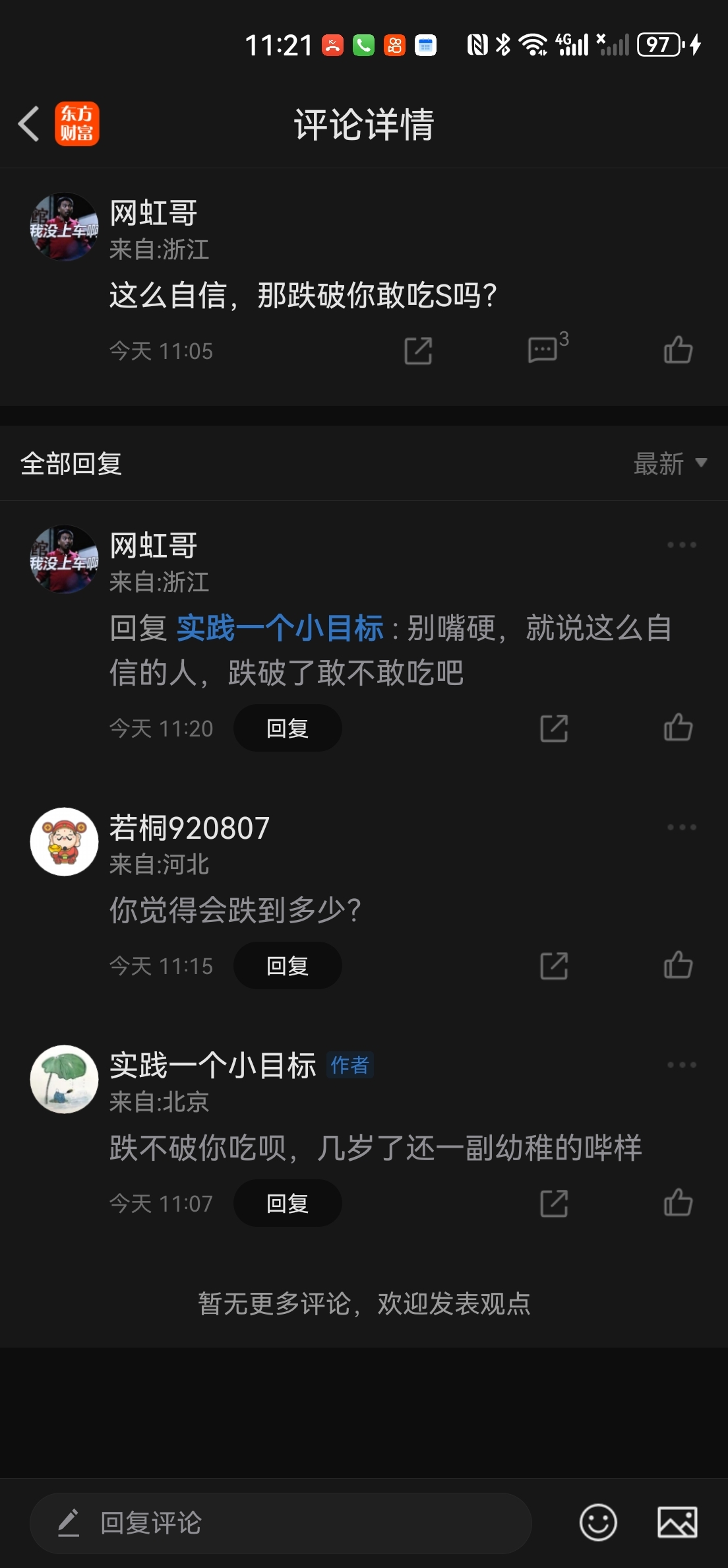 温馨提示: 1.根据《证券法》规定,禁止编造、传播虚假信息或者误导性信息,扰乱证券市场;2.用户在本社区发表的所有资料、言论等仅代表个人观点,与本网站立场无关,不对您构成任何投资建议。用户应基于自己的独立判断,自行决定证券投资并承担相应风险。《东方财富社区管理规定》