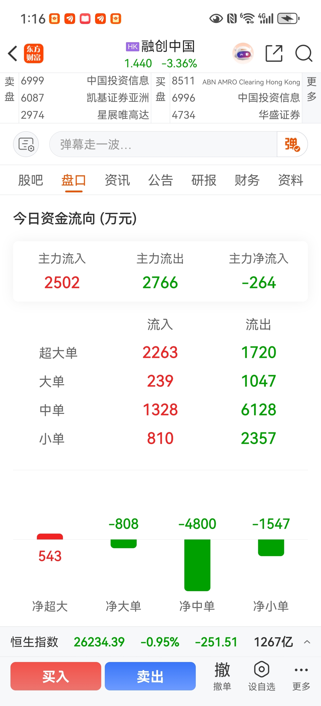 $融创中国(HK|01918)$ 主力没怎么跑,散户一直在逃跑,有啥可跌的呢