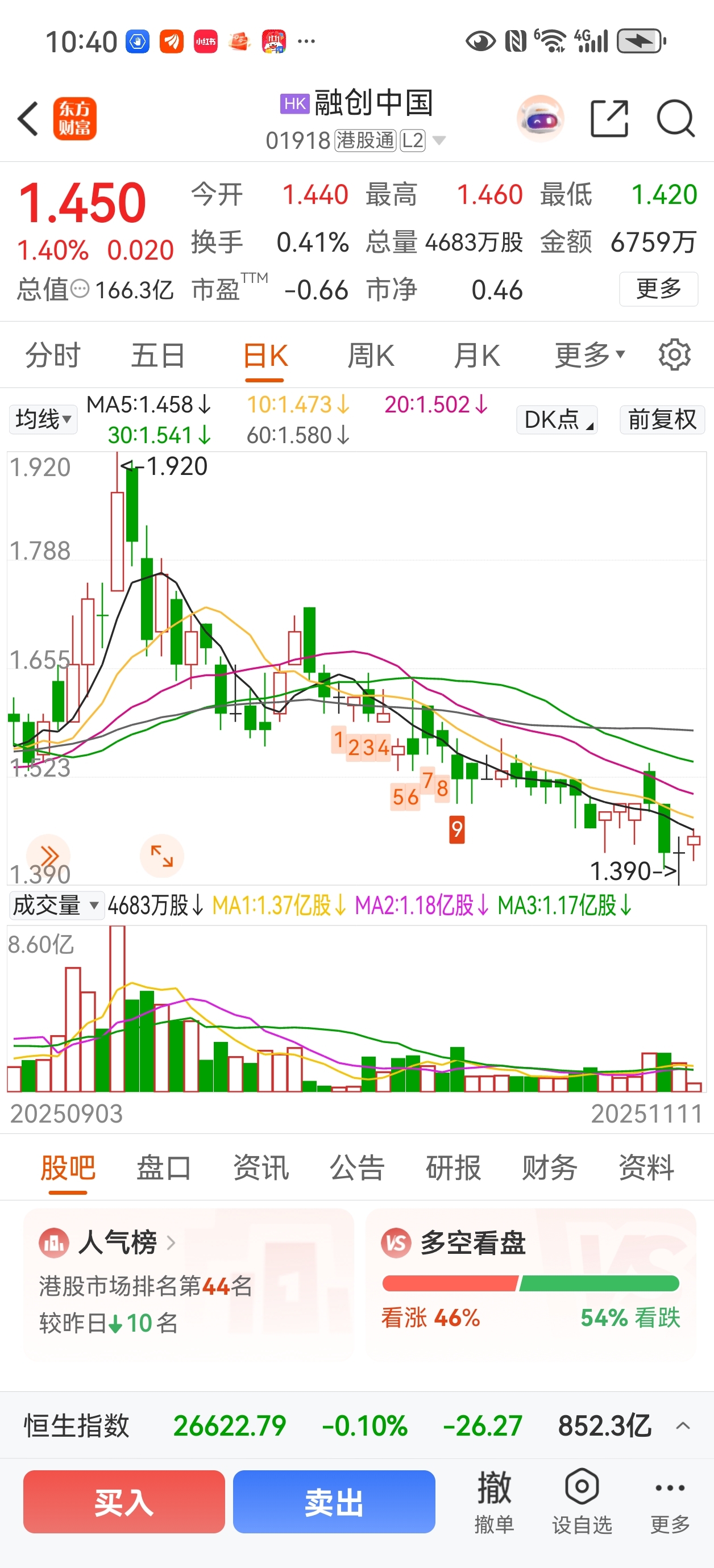 $融创中国(HK|01918)$ 可,,,跌了正正2个月了。。。
