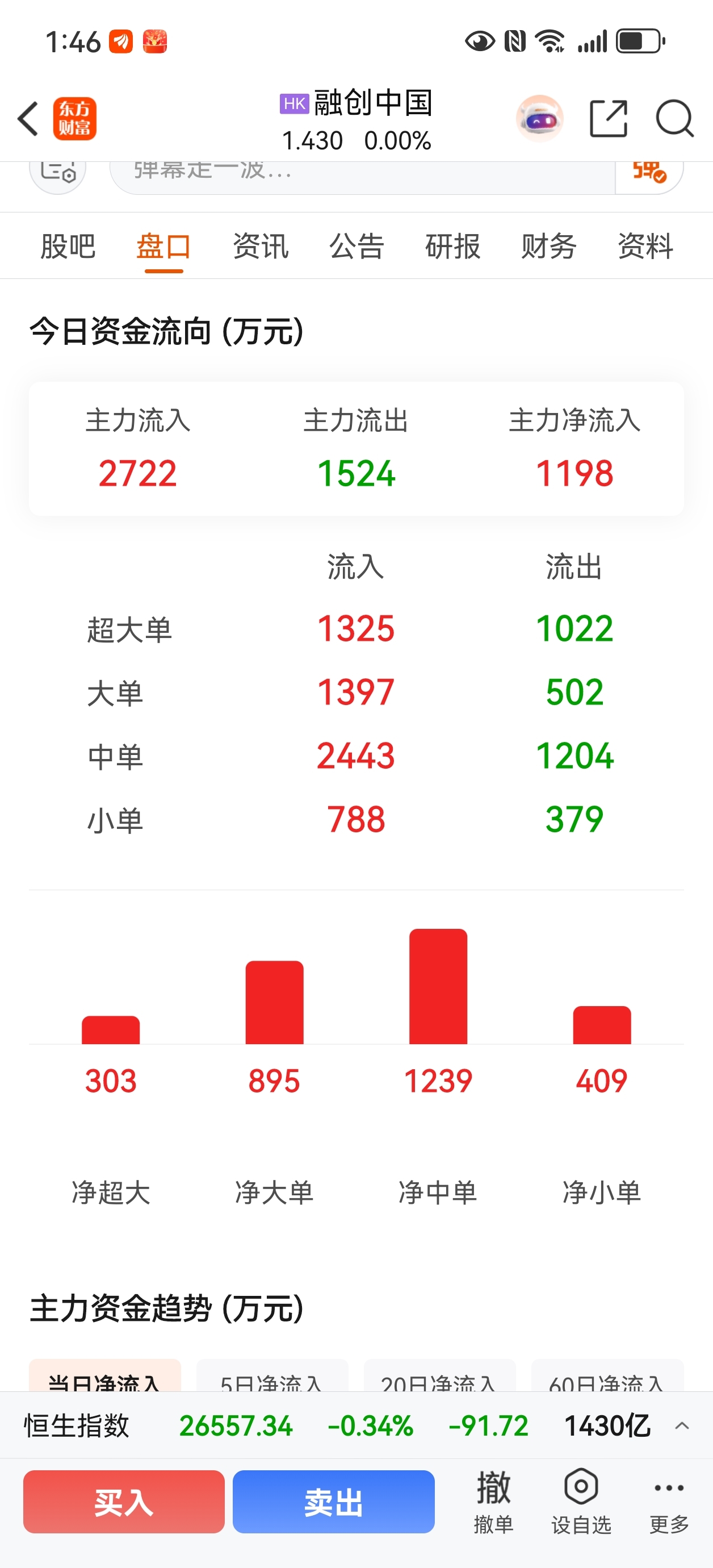 $融创中国(HK|01918)$ 主力流入也不涨,好奇怪
