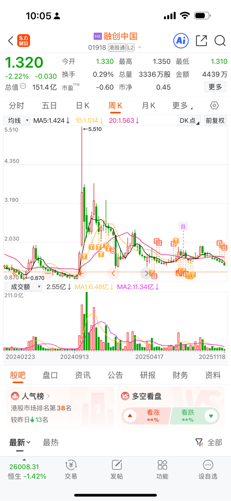 $融创中国(HK|01918)$ 成本1.1,你随便跌,给我狠狠的跌!哈哈!