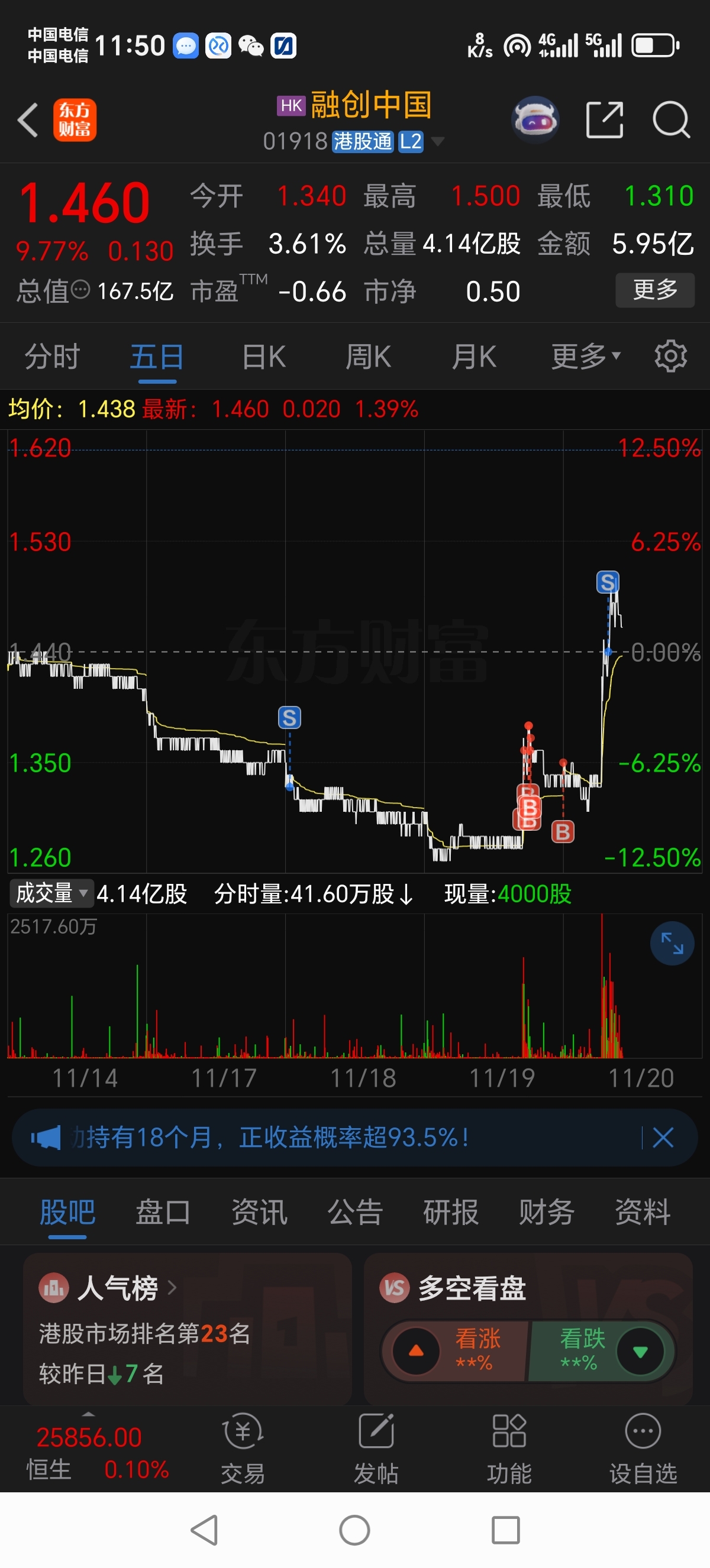 $融创中国(HK|01918)$ 真是再熬呢当你坚持不住了他就涨,就差一天,当然我是卖了也坚持不住了,可是我我又加N倍追回来了