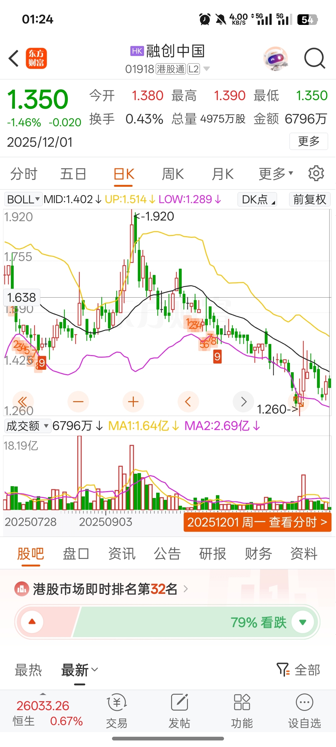 $融创中国(HK|01918)$ 今天是近期最小的量了吧