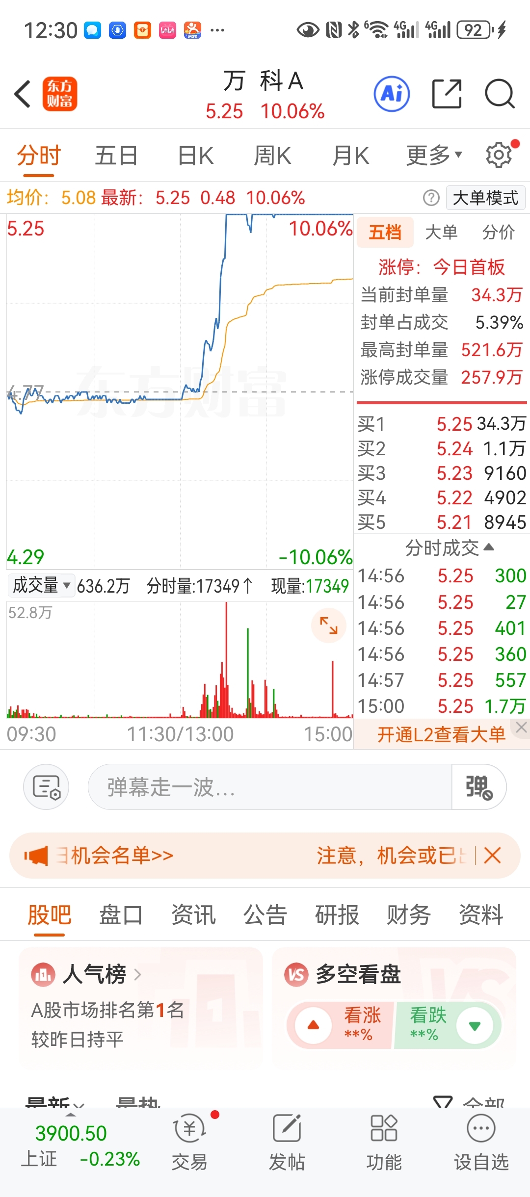 万科,A股热度第一,明天地产稳了