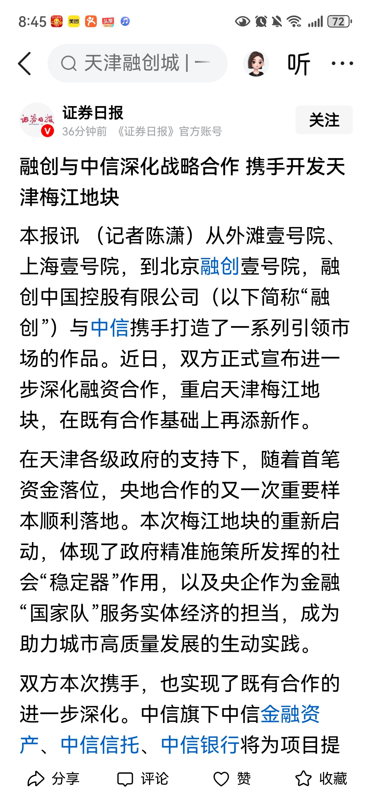 孙宏斌拉着多家央企和四大国有AMC公司做金主,开发各一二线城市和小城市的高端楼盘,通常用明股实债方式。今天拉着央企中信开发天津梅江地块,跟重庆湾拉着中国长城资产一样。这种合作方式比银行合作效率高多了,有央企出现的项目,地方政府都格外重视,基于我在央企总部20多年的工作经验和参加过的各种央地合作项目,地方政府会帮助项目打通不同部门的关节,一路绿灯,节省项目工期,提高各种效率,这是提高项目毛利率的高效手段,其它民营房地产企业有老孙这种人脉资源大量和央企合作的不多。这就解决了融创各地项目的开发资金问题。好像最近融创在县城的房地产项目也拉上了一家央企搞开发。真是一二线城市和县城上下通吃。资金问题和政府关系搞定了,项目运作效率提高,项目利润率自然提高。融创手里有巨大的土地储备,开发资金问题通过这种明股实债的方式与央企合作解决了,开发多少个项目,老孙会根据房地产市场和融创的年销售目标决定,5年前融创销售额可是到过5700亿一年。2026年融创销售额600亿以上的销售额是能实现的,毕竟各地的高端楼盘去化是面对最高购买力的人群。