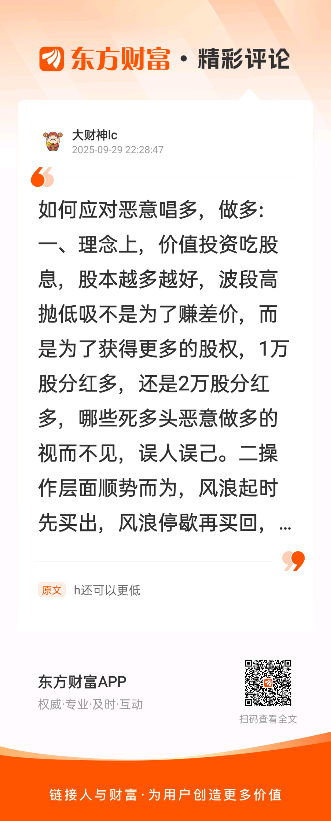 温馨提示: 1.根据《证券法》规定,禁止编造、传播虚假信息或者误导性信息,扰乱证券市场;2.用户在本社区发表的所有资料、言论等仅代表个人观点,与本网站立场无关,不对您构成任何投资建议。用户应基于自己的独立判断,自行决定证券投资并承担相应风险。《东方财富社区管理规定》