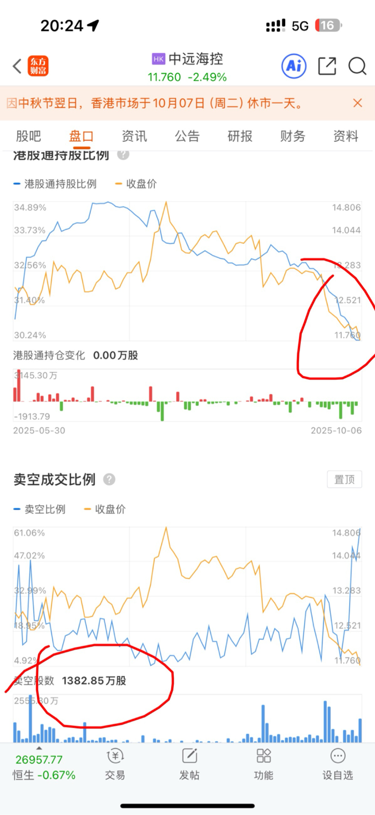 港股通持股比例从30%多下跌到11%,空单1380多万股,现在还敢买进的绝对是人