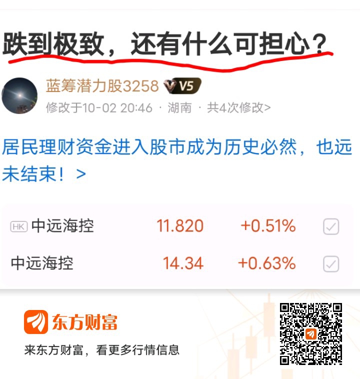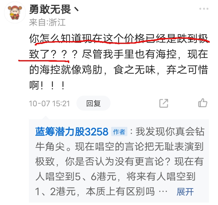 中远海控跌到一定程度时(称之极致),再跌对卖方亳无意义,但你仍要割肉,那是你春的事,无关乎我。