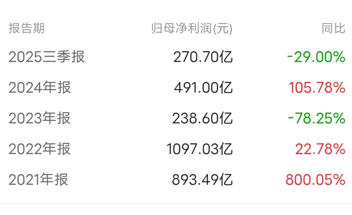 如图,光2021、2022两年纯利就有2000亿。2023、2024、2025前三季度纯利润接近1000亿,加上4季度则超1000亿。