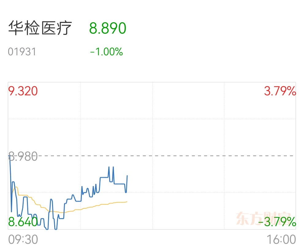 $华检医疗(HK|01931)$ 逐步走强起来,今天是要逆势翻红起来