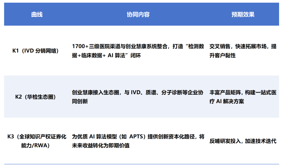 K3资本赋能:对于创业慧康经过充分验证、产生稳定现金流的优秀AI算法模型,华检医疗的RWA证券化能力可为其提供创新的资本化路径,开辟全新的价值实现通道。