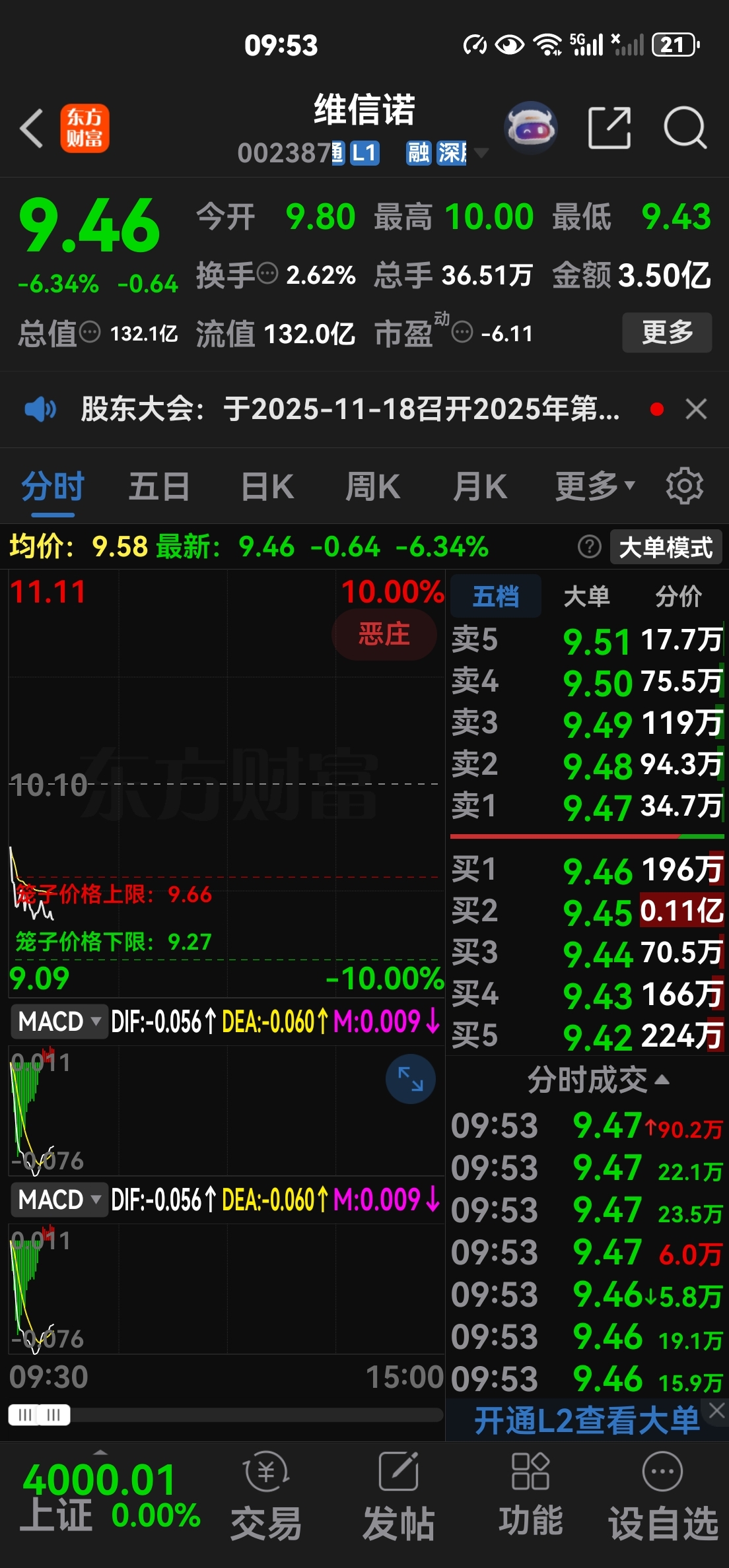 $维信诺(SZ002387)$ 【短线客来了】毫不犹豫滴9.46元买进,从昨天的大高点到今天的9.46元短线有18%利润,