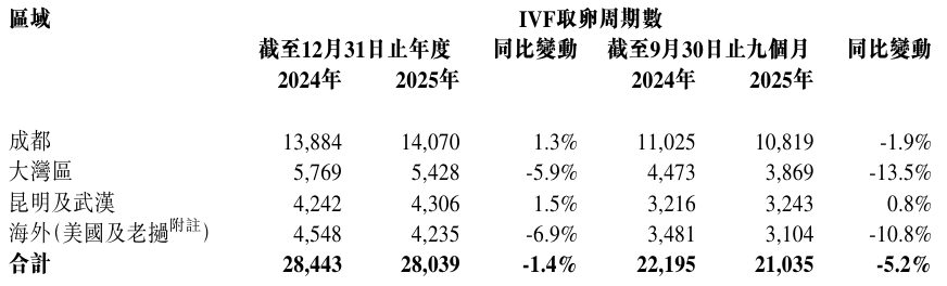 锦欣生殖:2025年IVF取卵周期数整体降幅进一步收窄至-1.4%