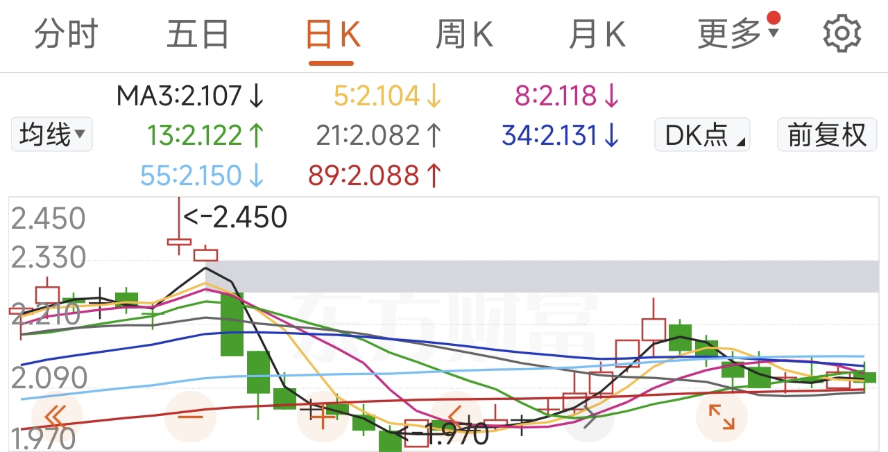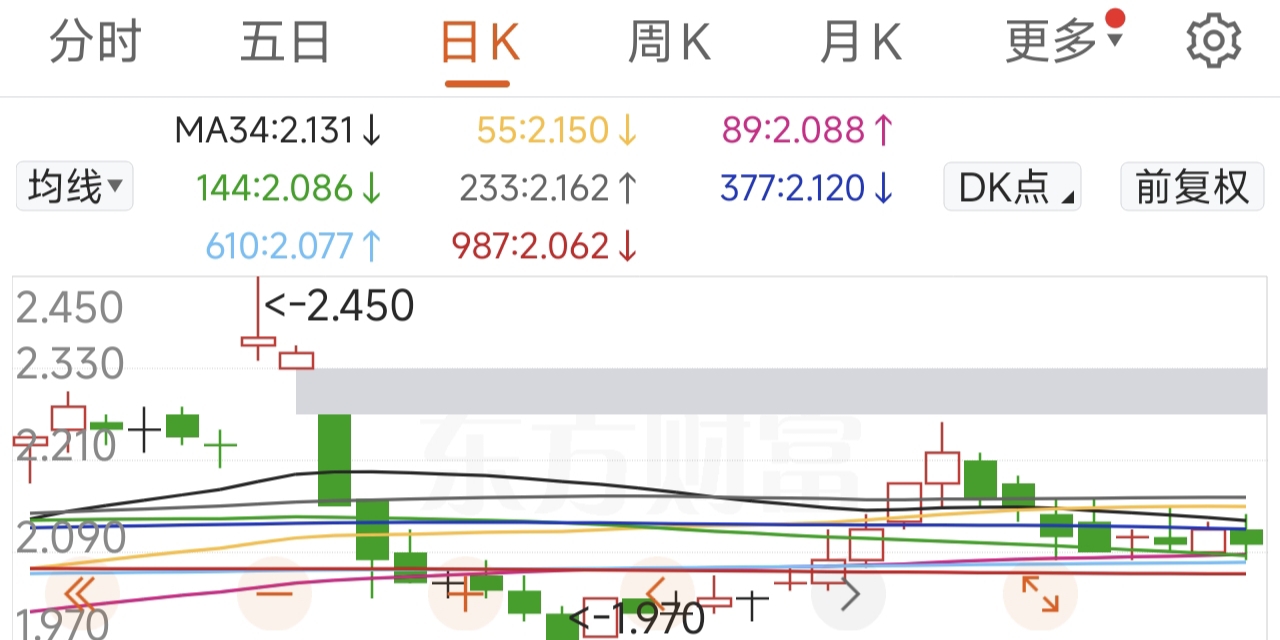 斐波那契系均线已全部密集在一起(最低与最高相差不超过5%),股价正好在这群密集均线的中间运行多日。现在只要横在这越久,未来向上或向下的动能就会越足。冲破10元或跌破1元,都可以。