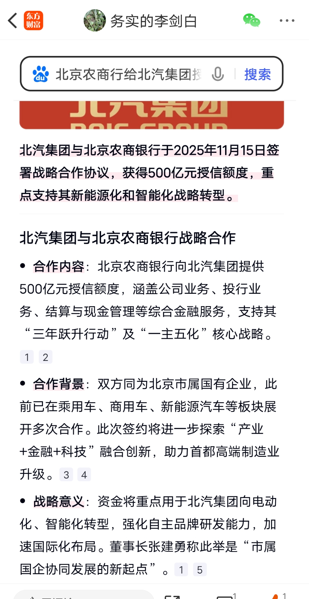 最新消息:北汽集团获得北京农商银行500亿授信额度,2025年11月15号签约。这可是一个不小的动作!