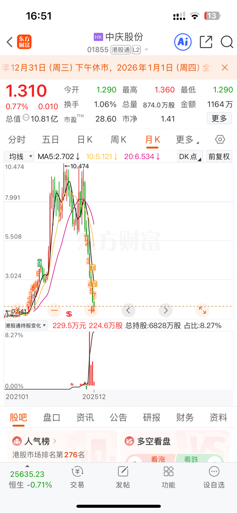 看春来的月线特别眼熟!后来我对比中庆,真tm的如出一辙,这个韭菜太狠了!港股老千