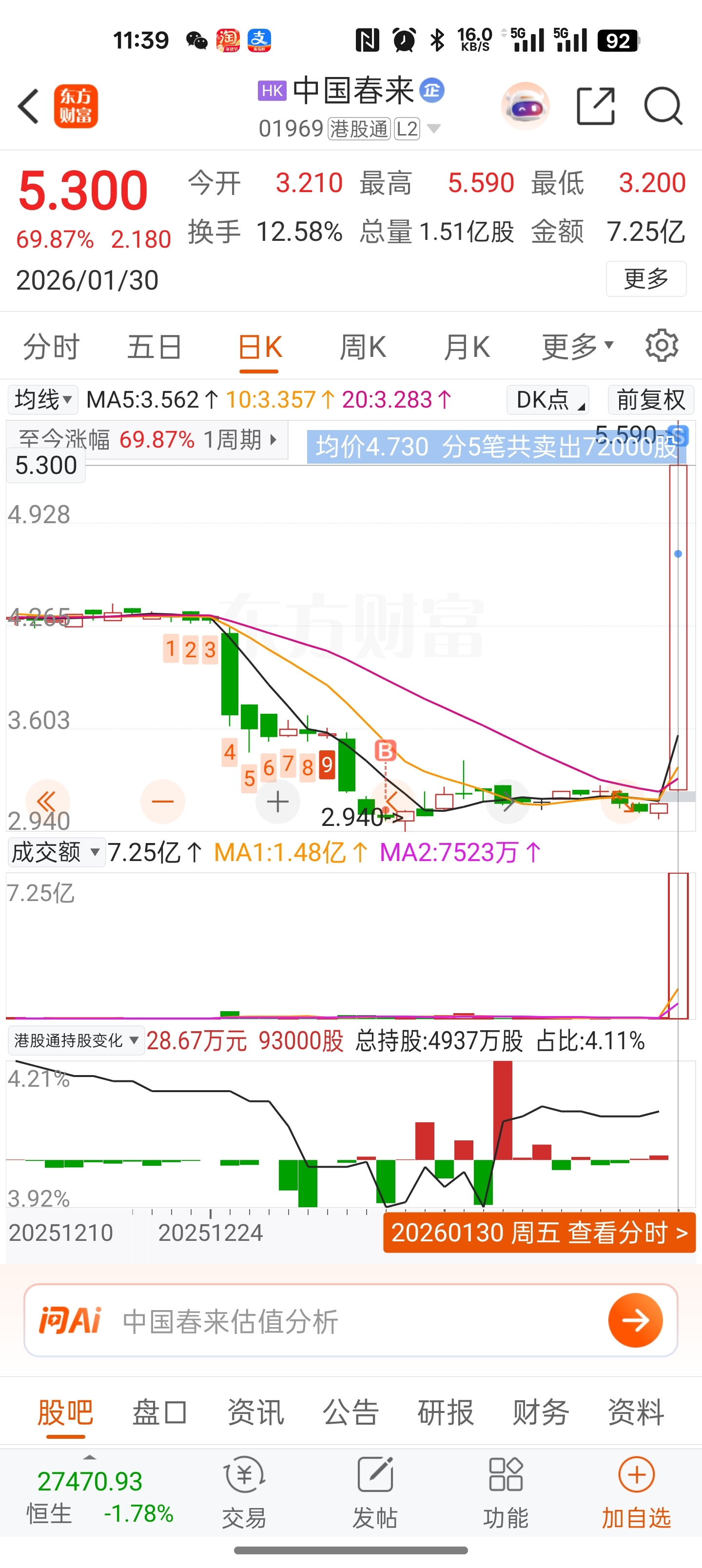 $中国春来(HK|01969)$ 3块的时候你们爱理不理,五块的时候蜂拥而至,一群投机的人跟我谈价值投资不觉得可笑吗?