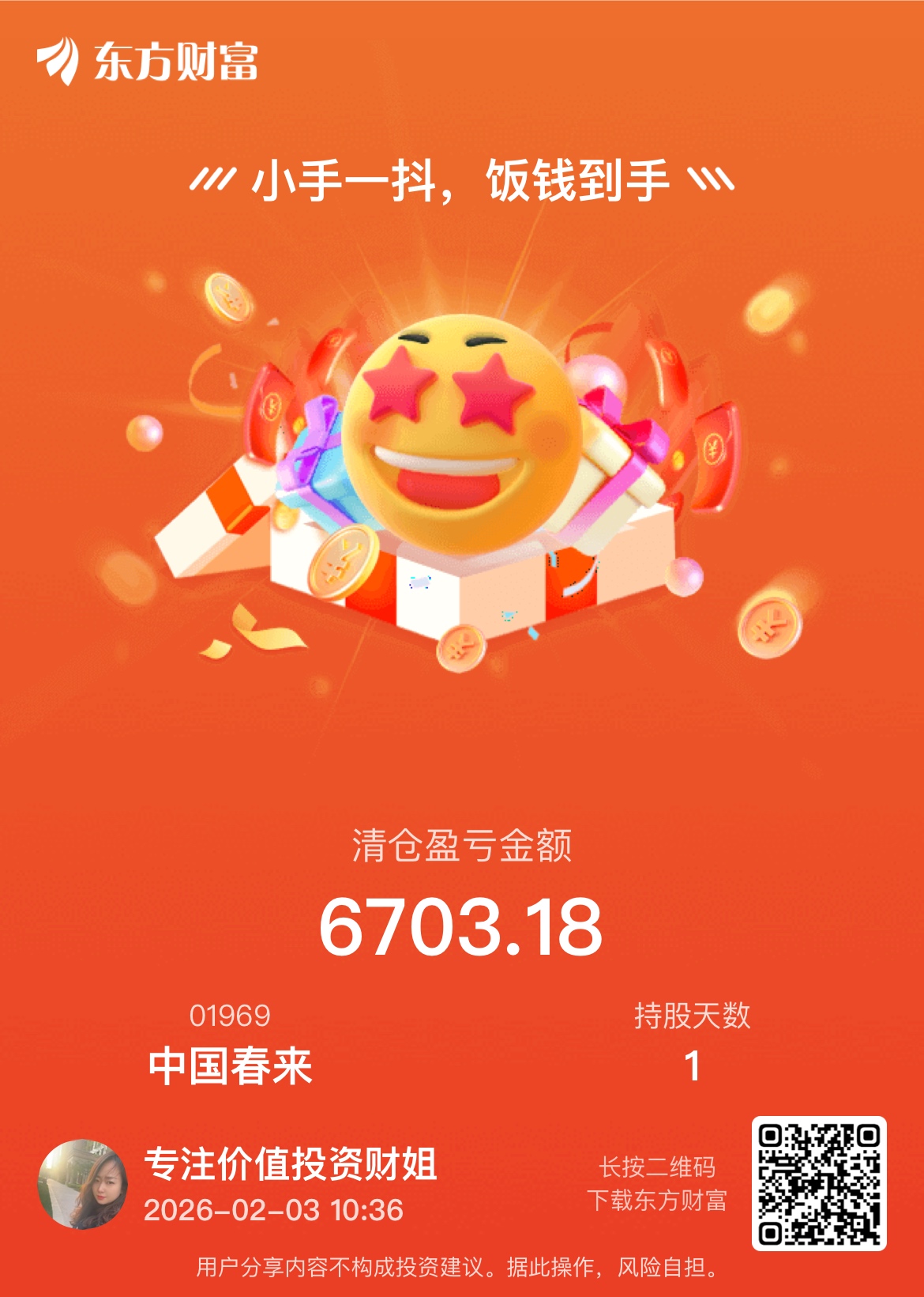 $中国春来(HK|01969)$ 昨天减仓了,没吃到大肉!后悔