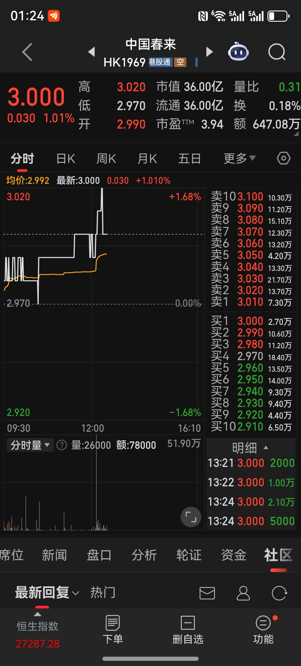$中国春来(HK|01969)$ 精准预测一下,正月初六之前必涨百分之三十。