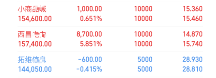 小商品城:昨天低开低走,但是后续有一定的支撑和紫荆做为承接,量能柱呈现缩量,K线方面回踩下方5日线不破,周线和月线依然在上涨趋势当中,所以昨天回踩的时候适当入了一些,今天先看紫荆动态,短期应该还有一定的行情。