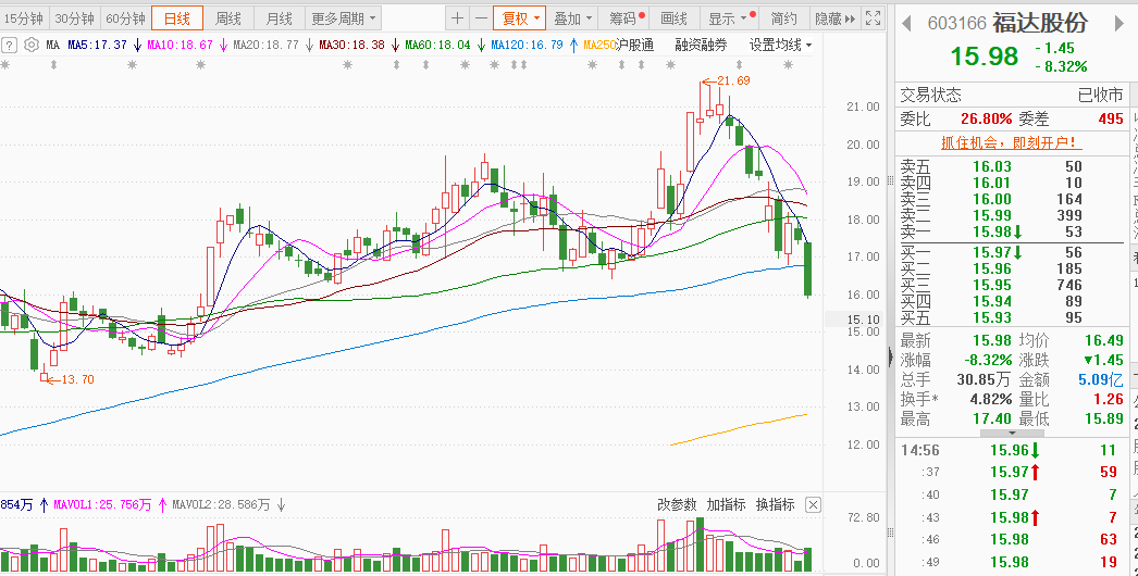 福达股份:汽车零部件,上周五被大盘拖累跌破半年线支撑,继续向下寻找底部,按理该股是要止损撤退了,放量下跌,但考虑到每周一都有不错的修复,看周一能否有修复,如果没有强修复考虑撤退。