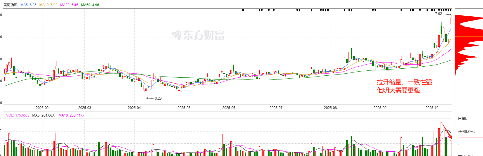 黄河旋风600172:培育钻石昨天被催化了,所以今天早上高开之后小分歧完成被承接住后直接就上了板,不过这种突然出来的板块活跃度不够,也许明天就断板了,那么明早就要趁着冲高的时候撤退了