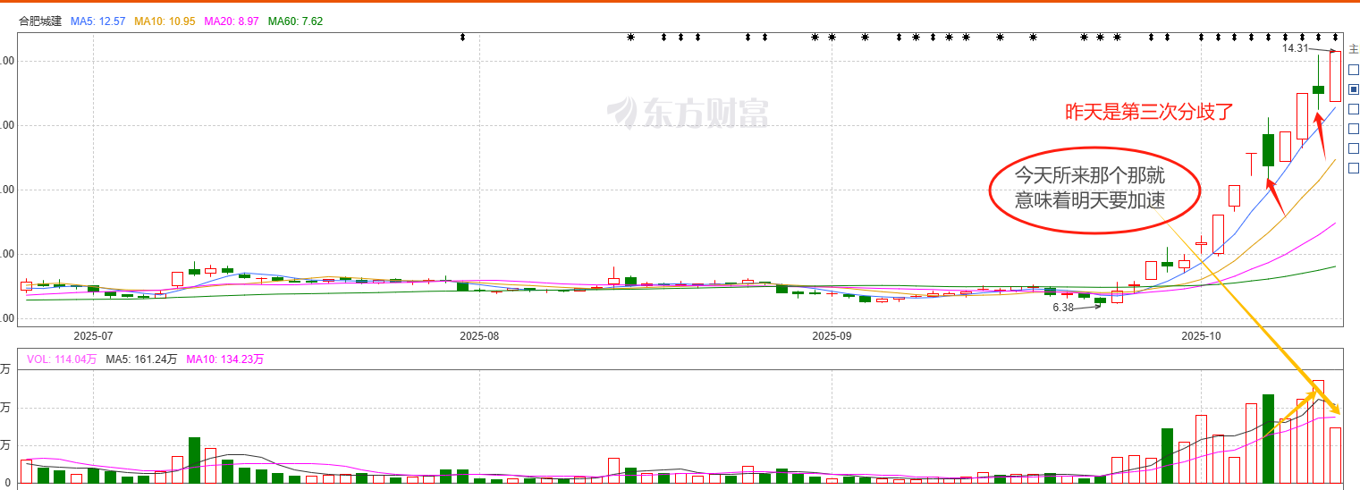合肥城建002208:间接投Z长鑫科技,前面其实有过两次分歧,但是昨天第三天分歧是有放量的,所以今天低开都是正常的,但是随后不仅承接住而且封住板全天缩量,一方面说明大家都开始抱团,二个今天这种情况明天大概率高开之后冲高就要准备撤了,因为明天要更强才行,显然对于这种换手上来的有点不友好。所以没有的明天不建议头铁。
