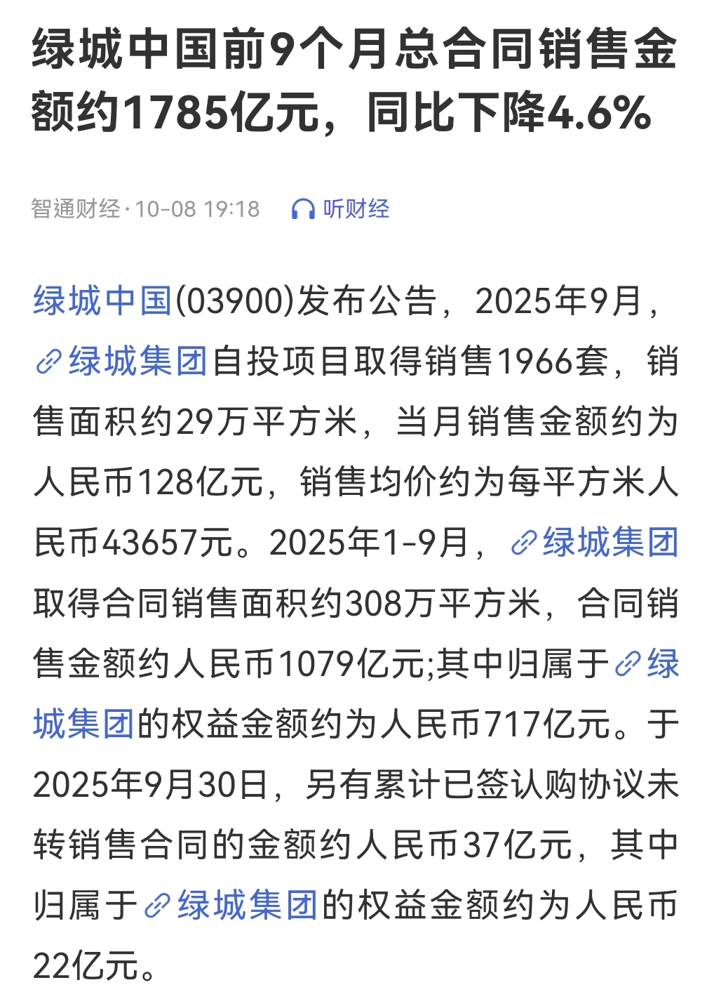 $碧桂园(HK|02007)$ 9月份合同销售金额约25.8亿元,融创13亿元,绿城128亿。