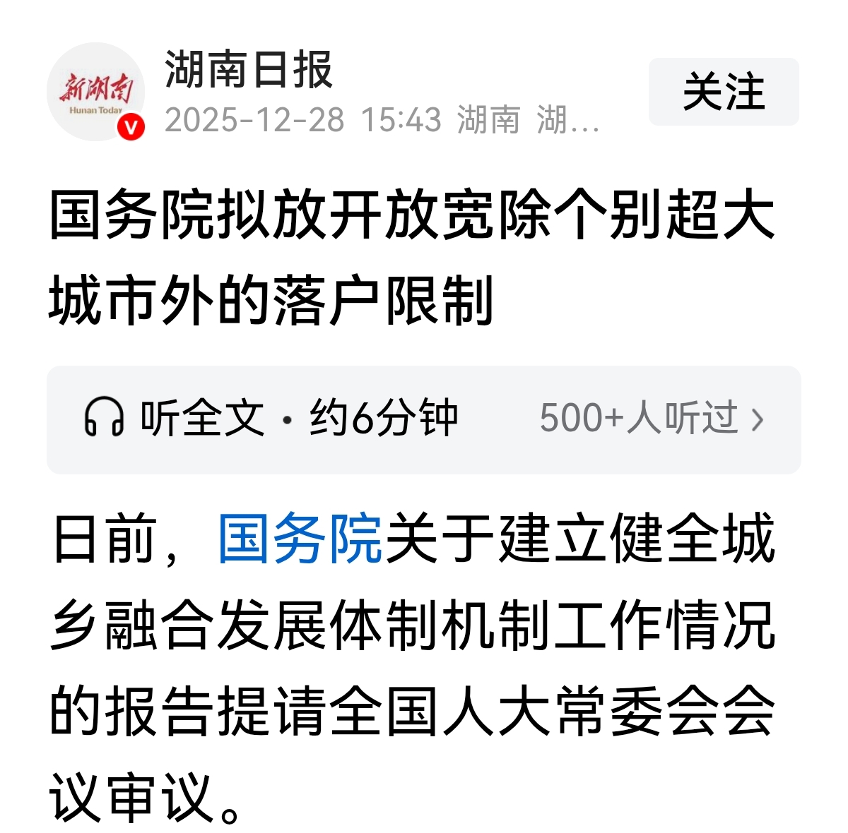300万基本放开,300-500进一步放宽,继续推进城镇化
