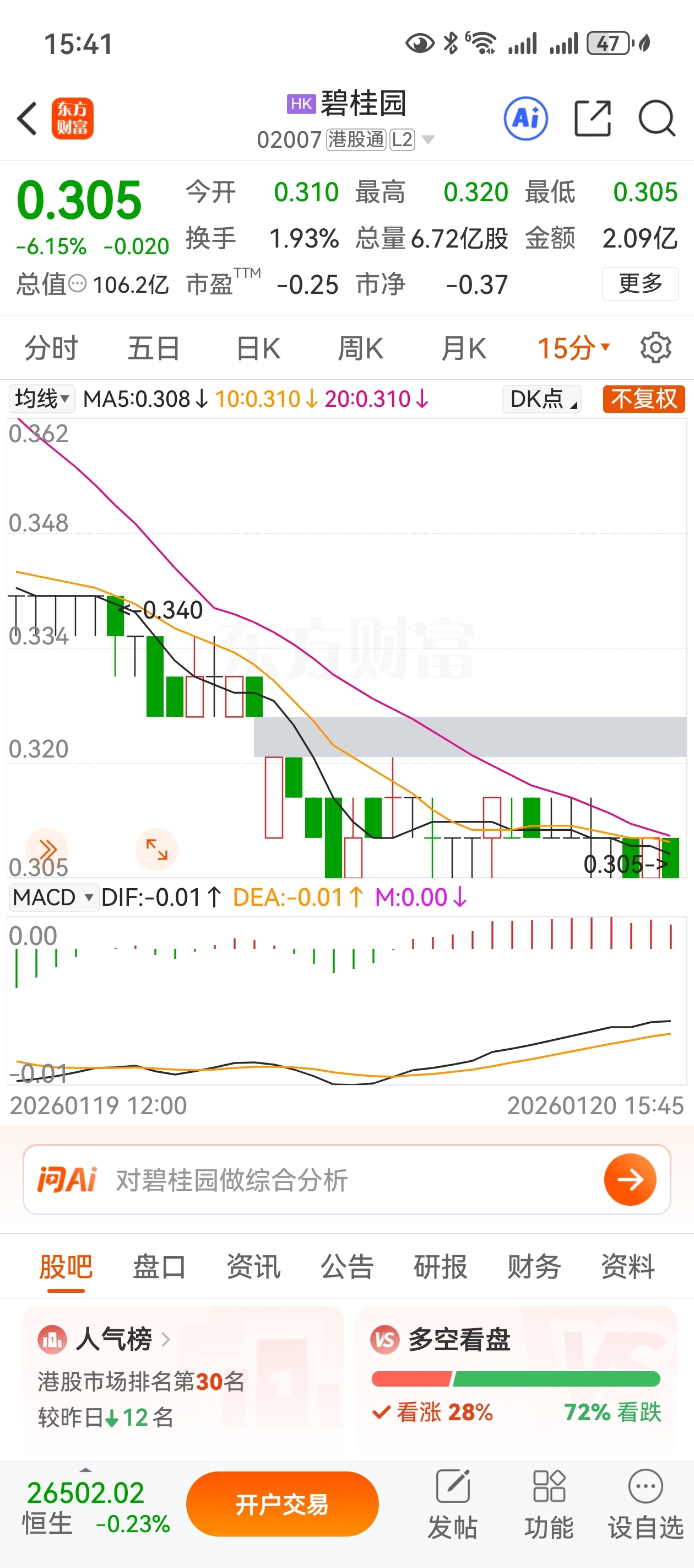 $碧桂园(HK|02007)$ 破不了3毛该涨了
