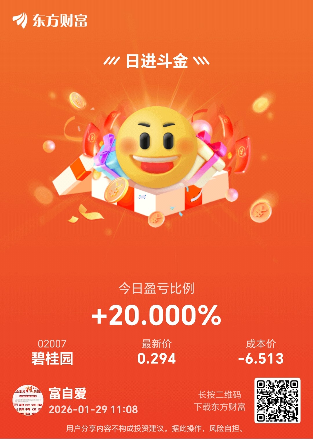 温馨提示: 1.根据《证券法》规定,禁止编造、传播虚假信息或者误导性信息,扰乱证券市场;2.用户在本社区发表的所有资料、言论等仅代表个人观点,与本网站立场无关,不对您构成任何投资建议。用户应基于自己的独立判断,自行决定证券投资并承担相应风险。《东方财富社区管理规定》