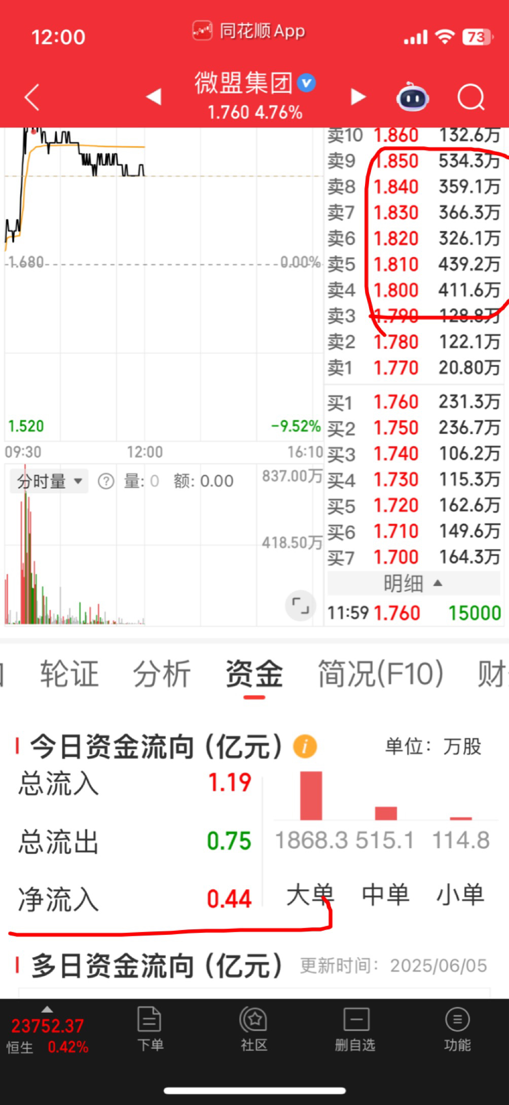板块都是涨的,.80和1.85这故意大单压着吓韭菜,资金净流入4千4百万,很明显