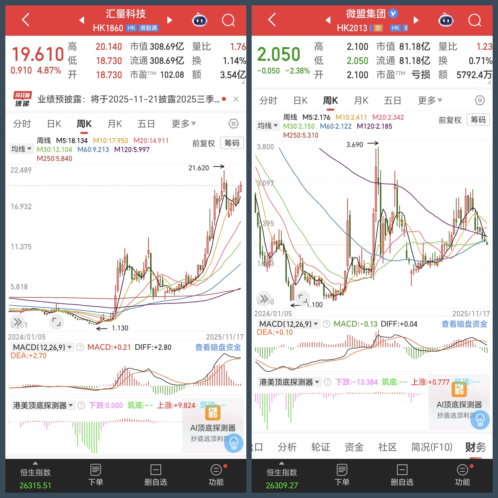 $微盟集团(HK|02013)$ $汇量科技(HK|01860)$ 都是去年一块钱涨起来的,一个天一个地啊!
