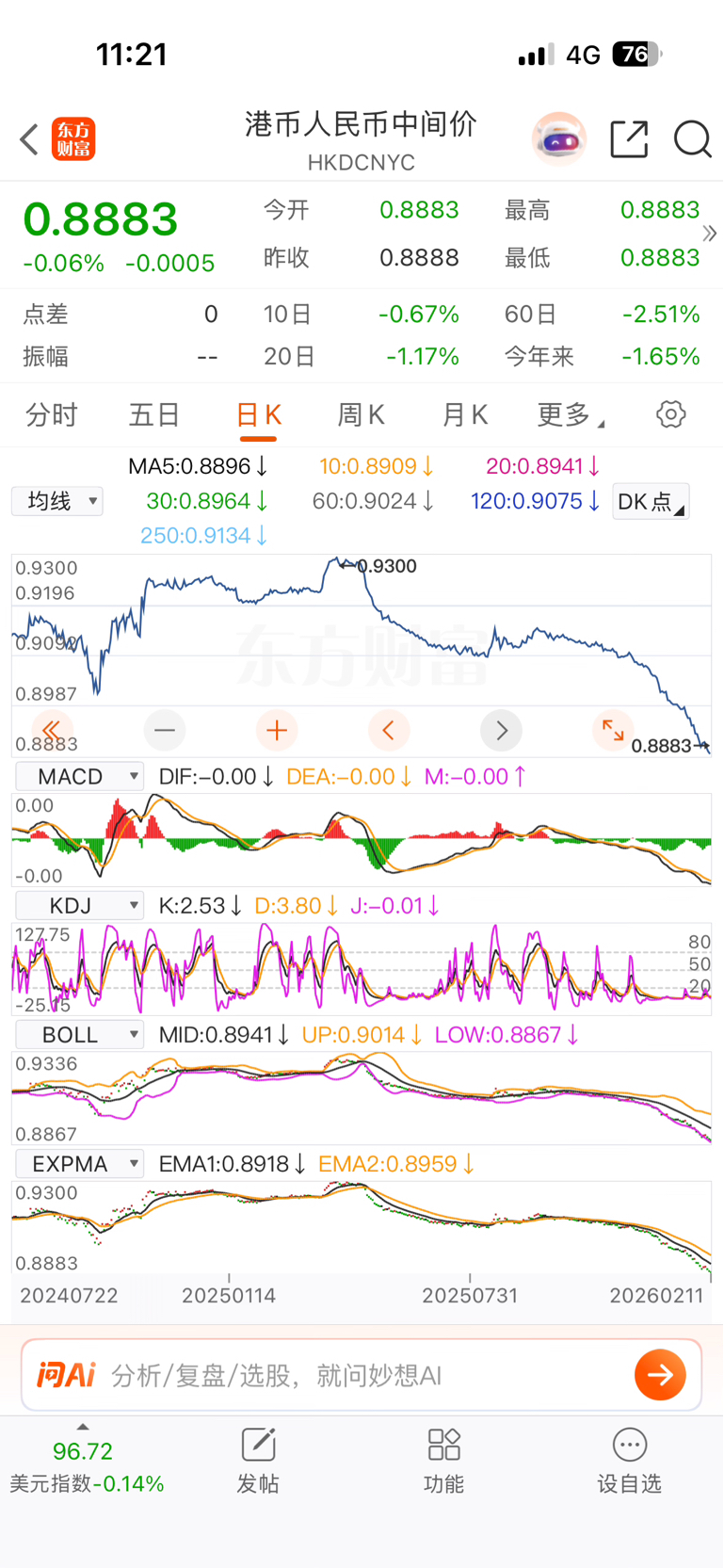 一年下来哪怕股票不跌,汇率都跌掉5个点。。。简直了!港股现在是毫无性价比