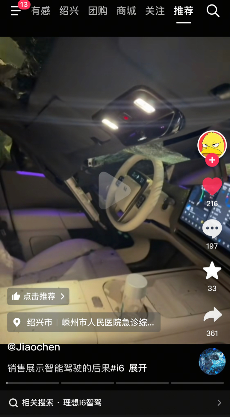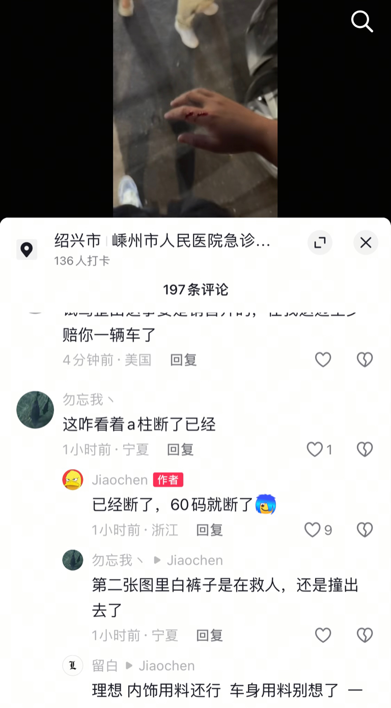 昨晚抖音看到的,智驾60码撞车A柱断了,目前视频已被和谐