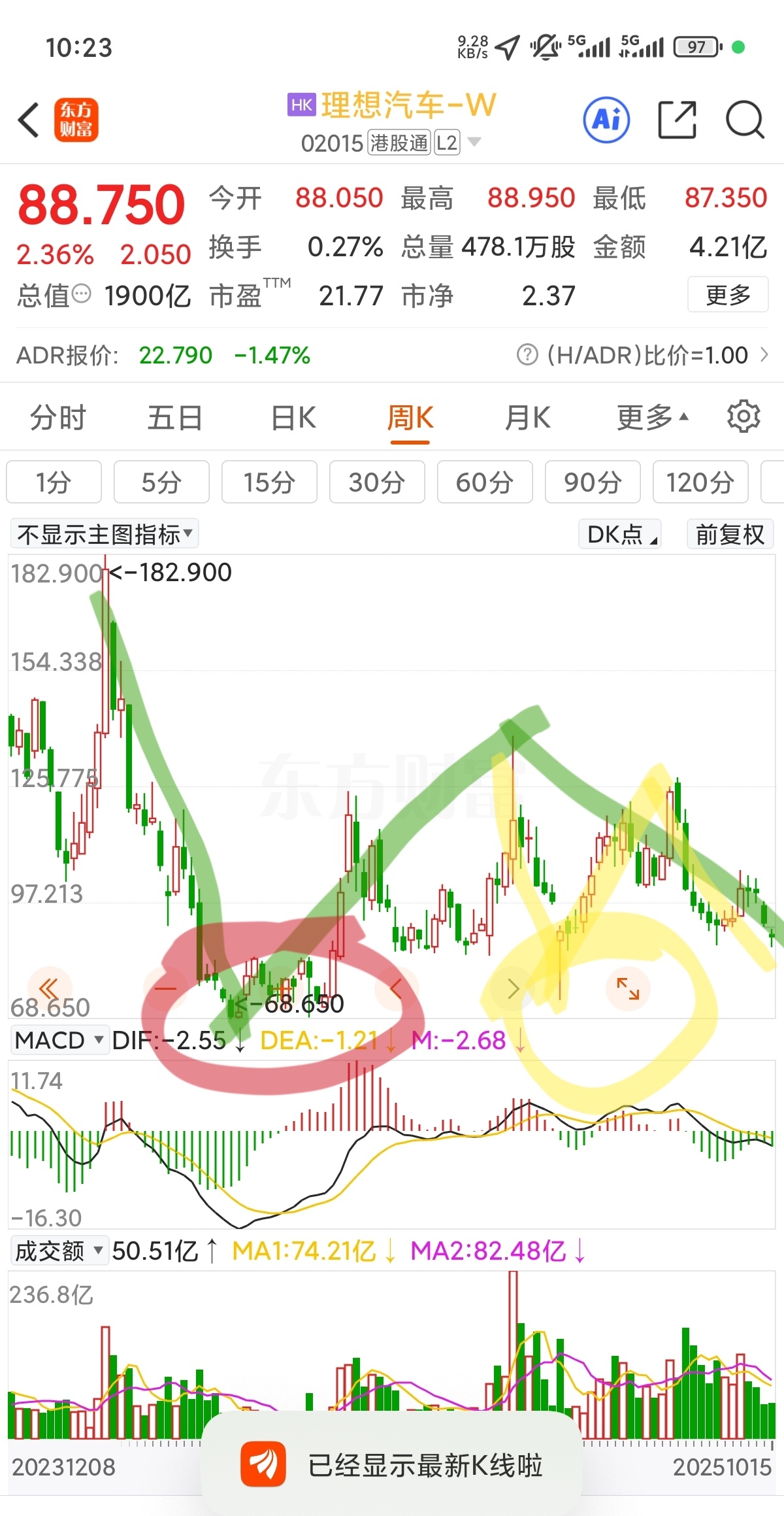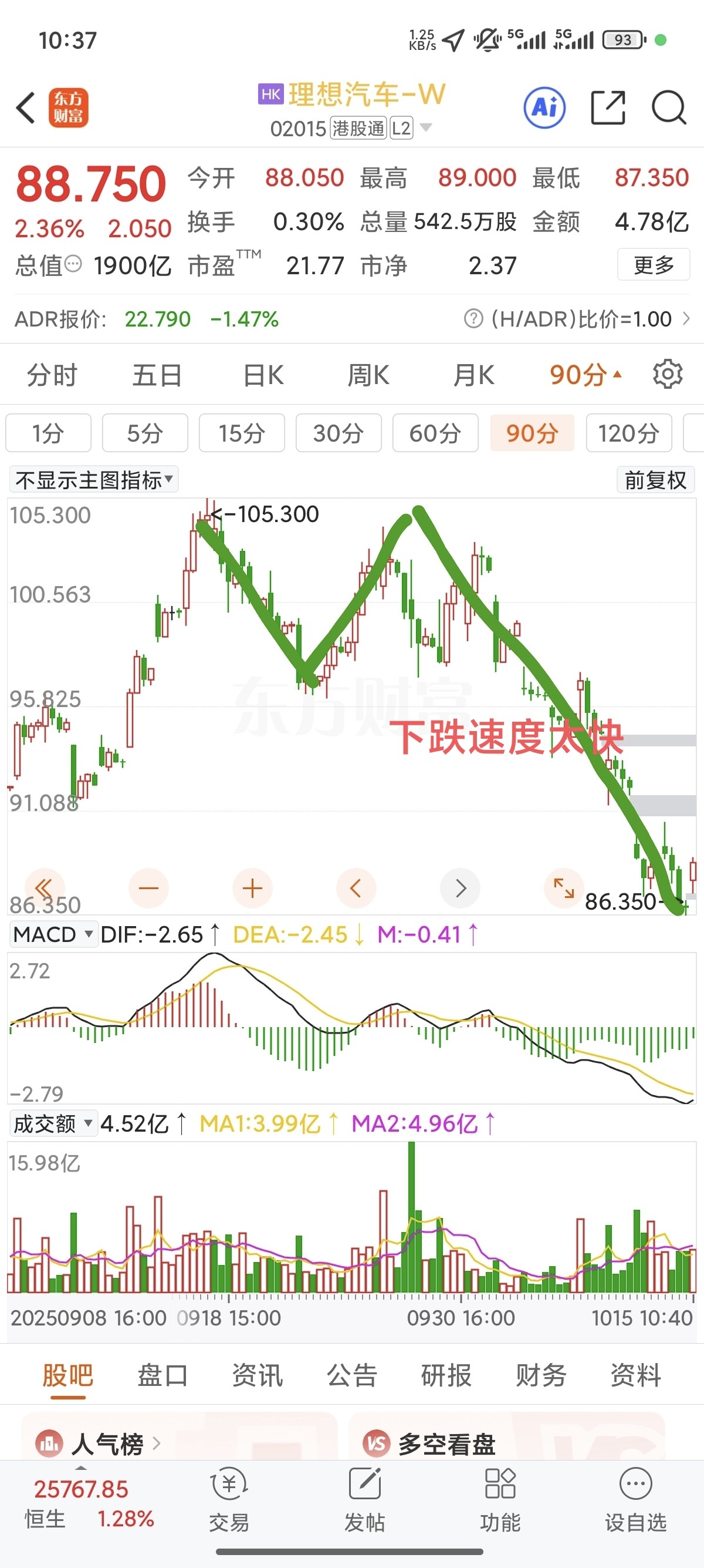 这走势有点让我生气了,作为一个车主的感受,我认为理想汽车完全不应该是现在这种情况,市场对理想有点太悲观了。你等着,要是这样的话我还就跟你杠上了。有空会更新。