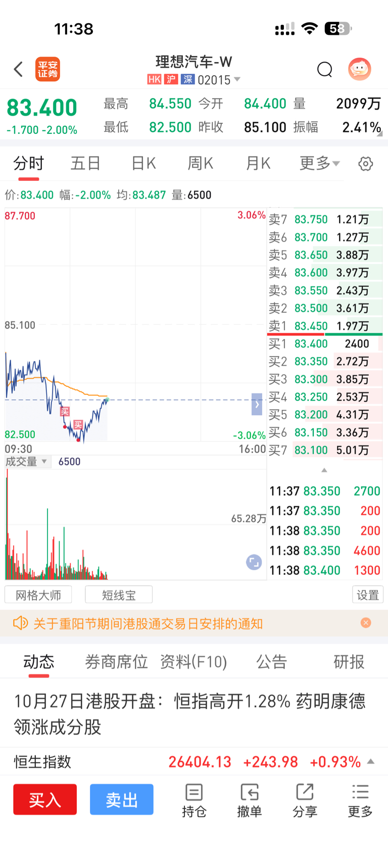 $理想汽车-W(HK|02015)$ 买到了今天最低点