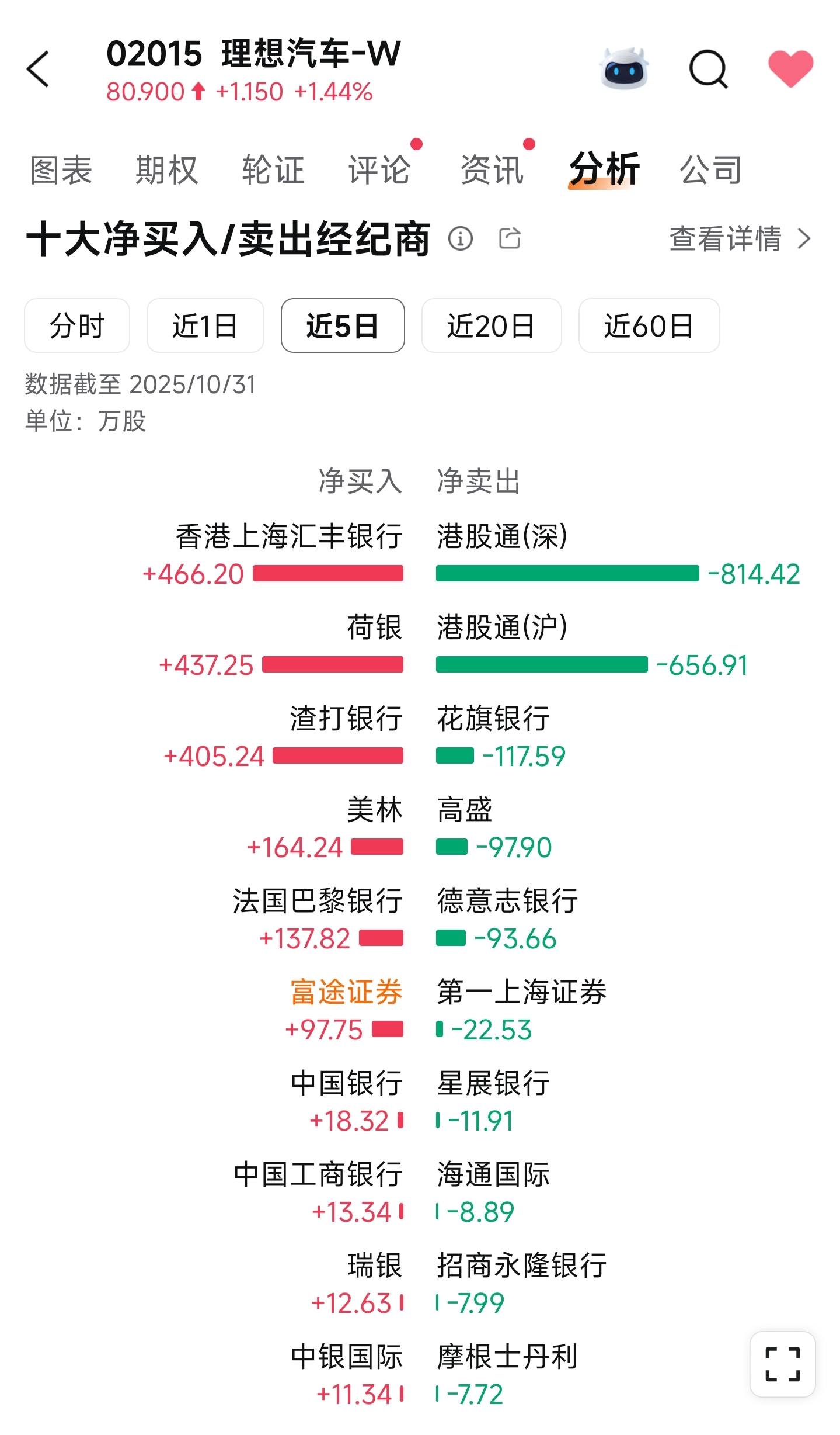 $理想汽车-W(HK|02015)$ 港股通散户这几天跑的有点多