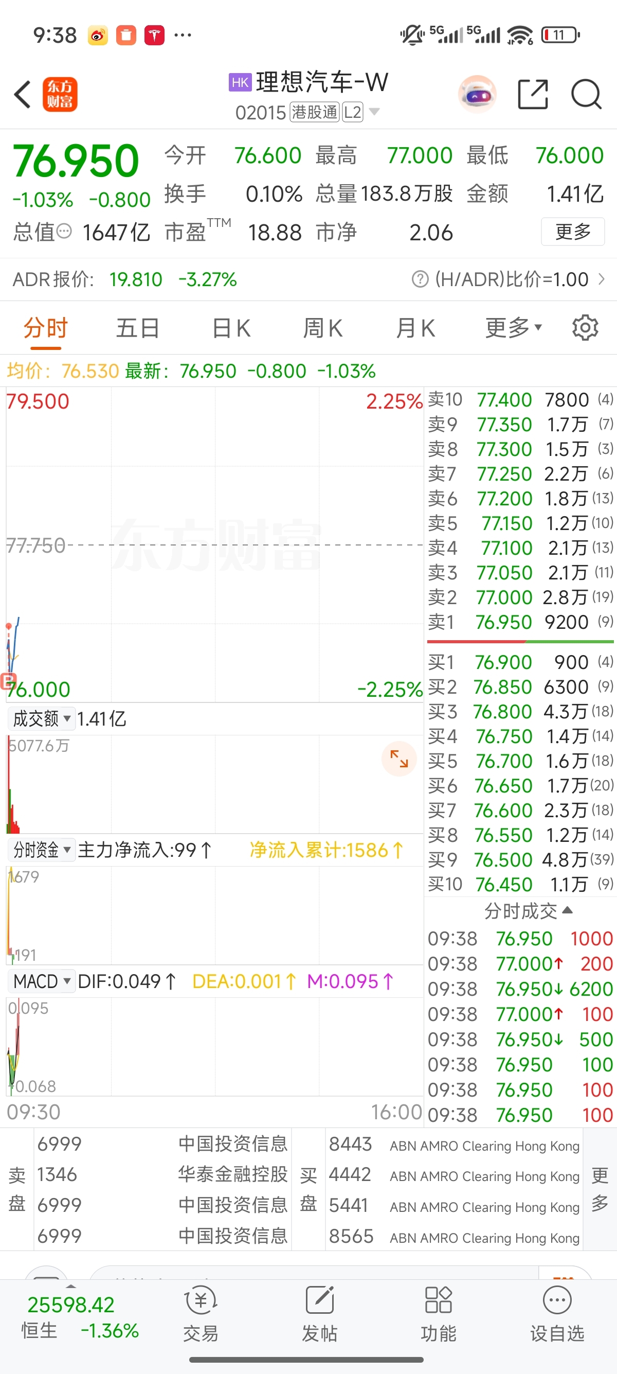 $理想汽车-W(HK|02015)$ 加76.8 300股,无所谓,加
