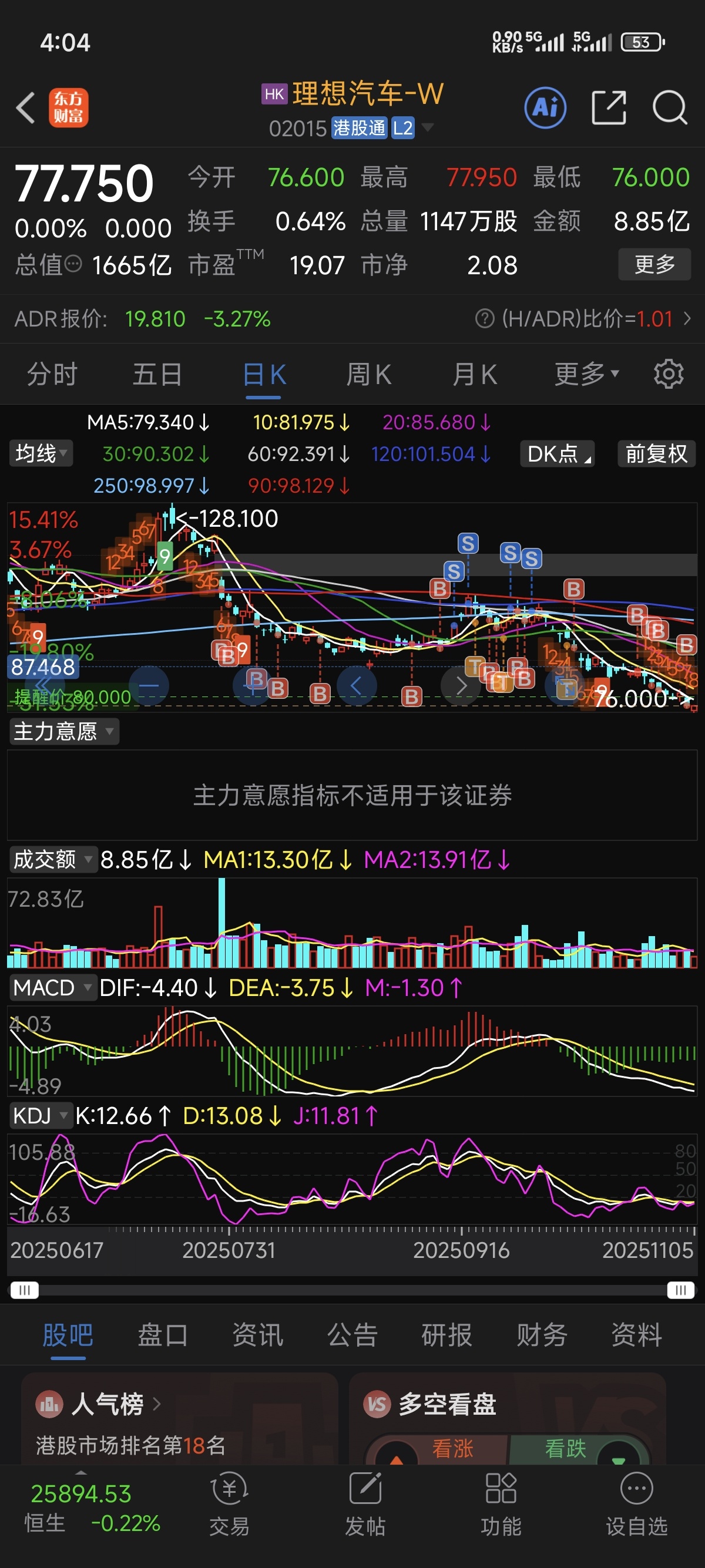 $理想汽车-W(HK|02015)$ 亏吐了,高位卖了,后面不应该接回来的,这波亏吐了
