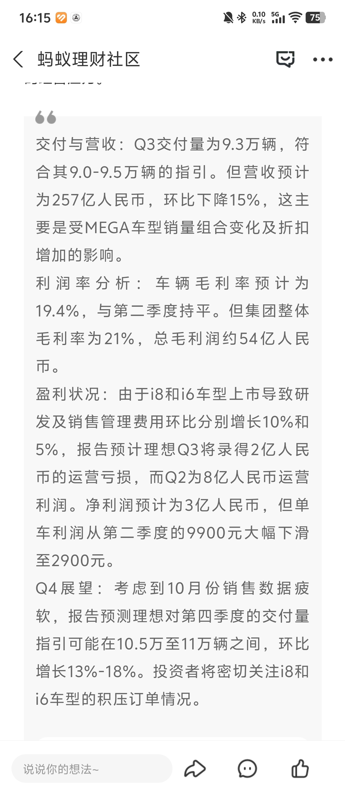 $理想汽车-W(HK|02015)$ 大摩对理想的三季报预测和四季度预测