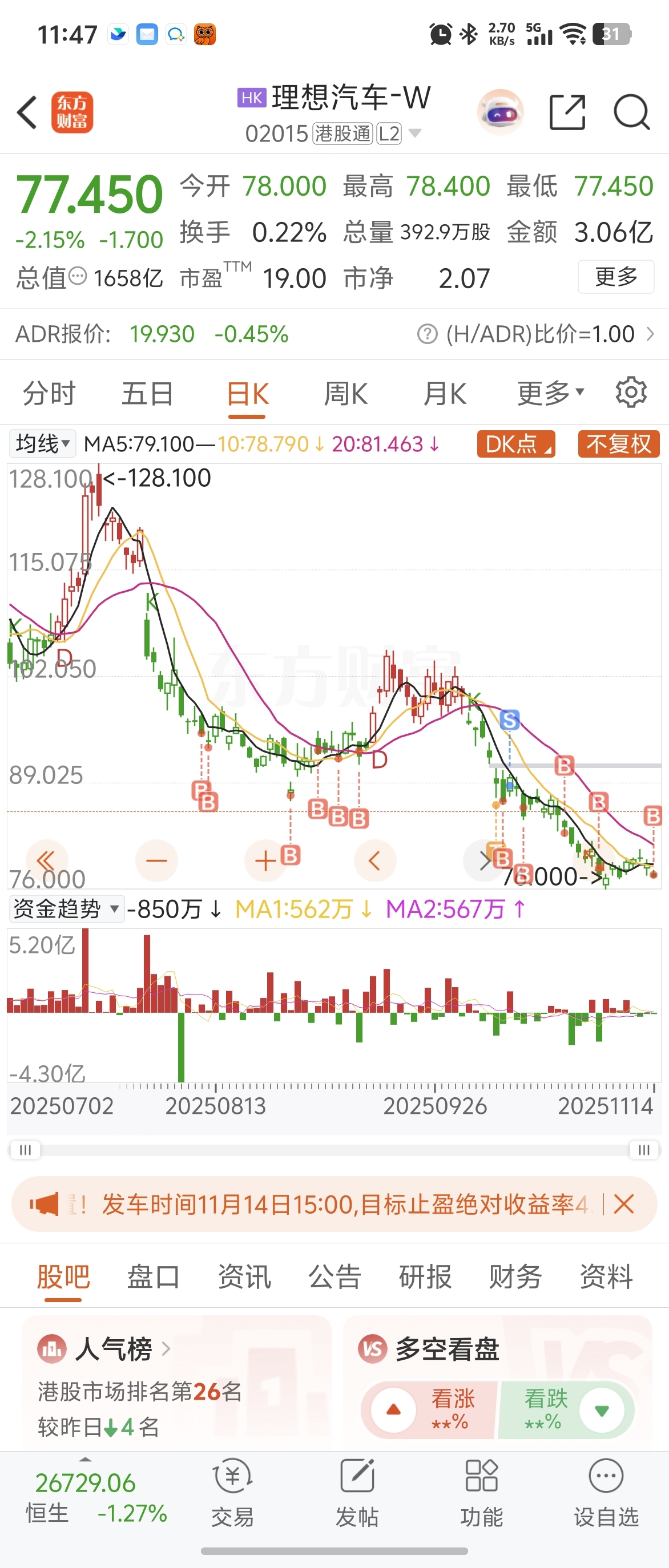 $理想汽车-W(HK|02015)$ 一路跌,一路加,不要慌