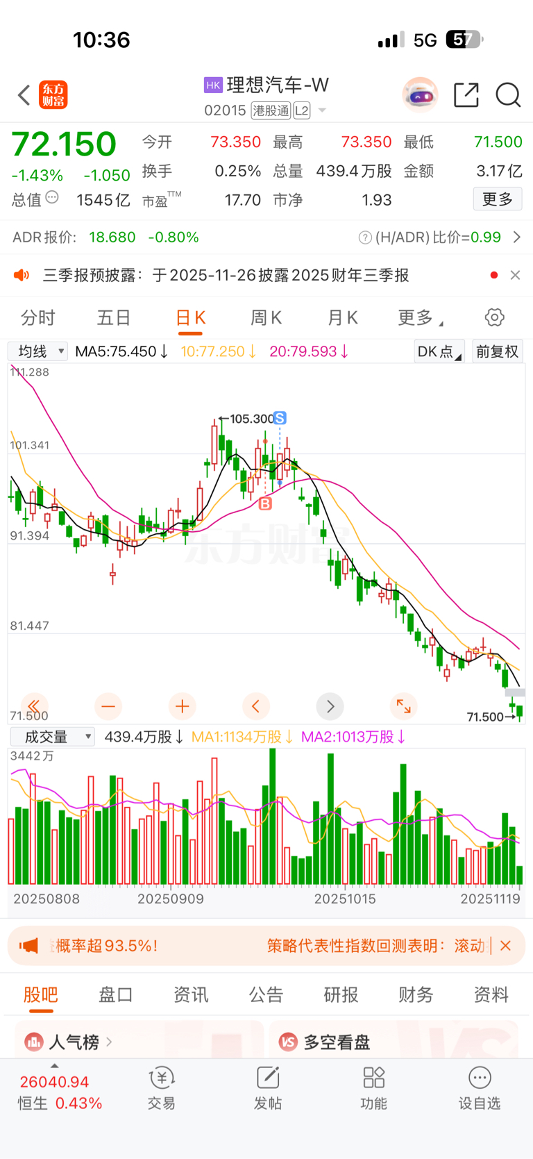 $理想汽车-W(HK|02015)$ 当时还以为卖飞了…