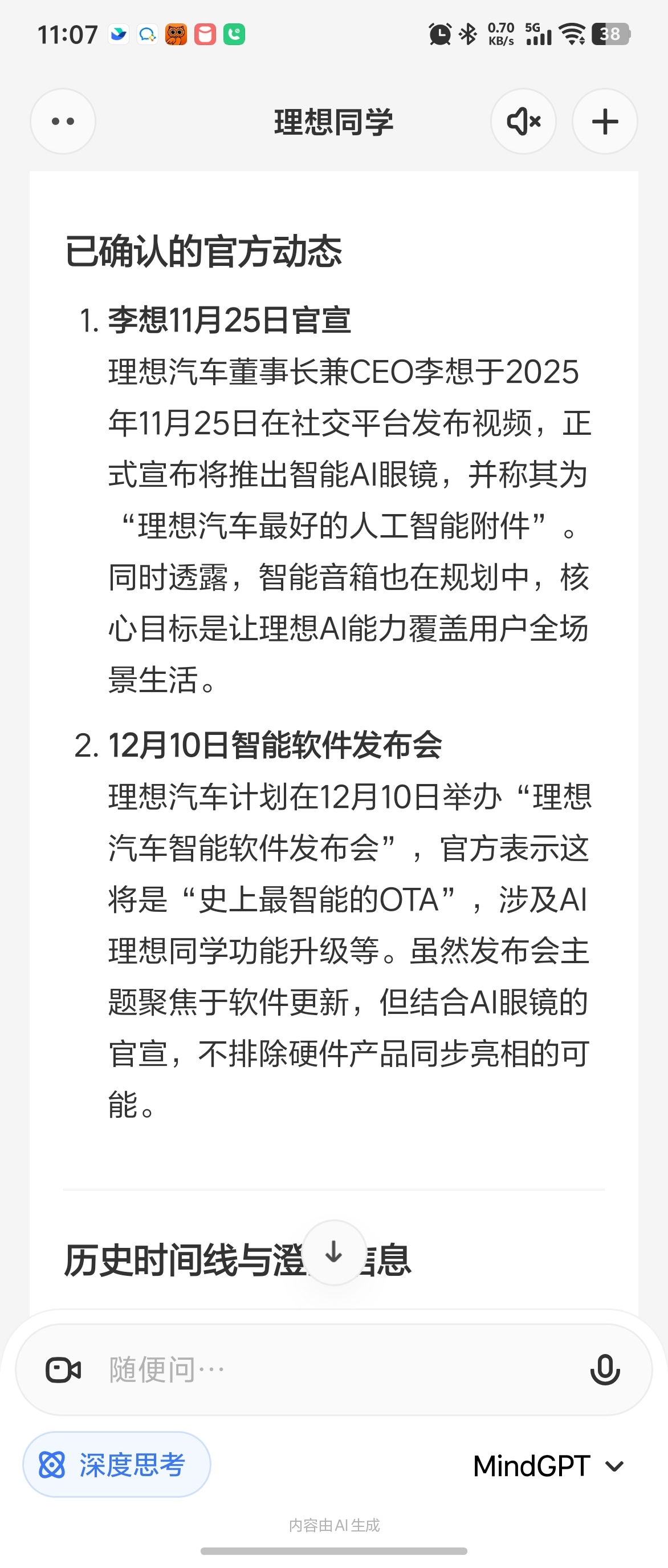 $理想汽车-W(HK|02015)$ 12.10号发布AI眼镜?