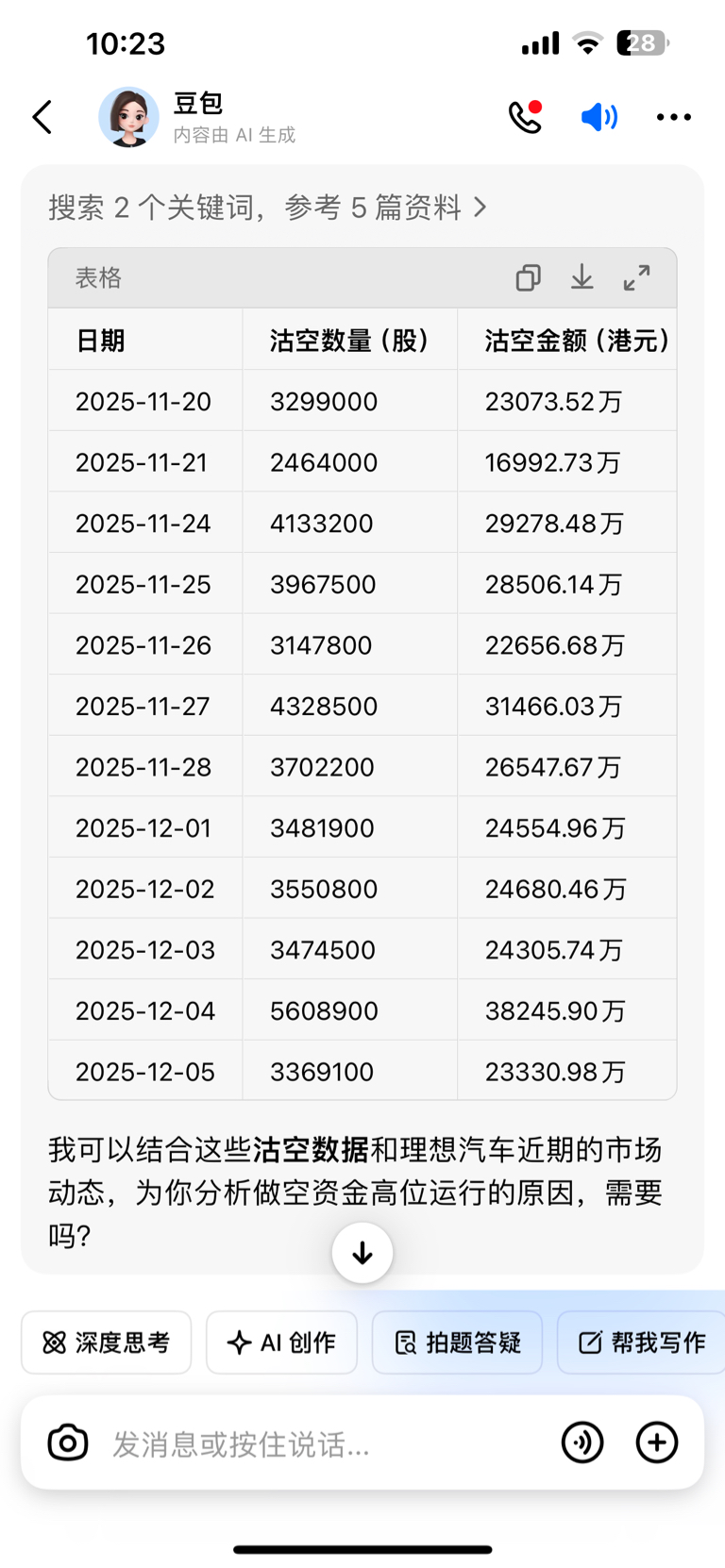 $理想汽车-W(HK|02015)$ 理想被空头盯住了